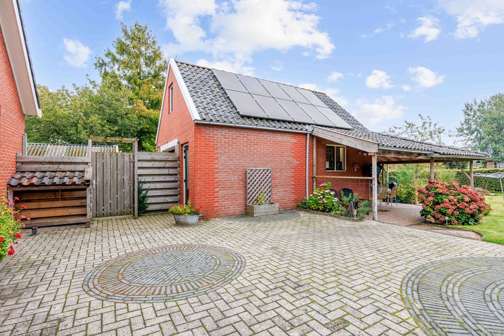 De oprit naar de garage is voorzien van klinkers. De deur van de garage is een elektrische sectionaaldeur. Energielabel D. Er zijn 10 zonnepanelen aanwezig.