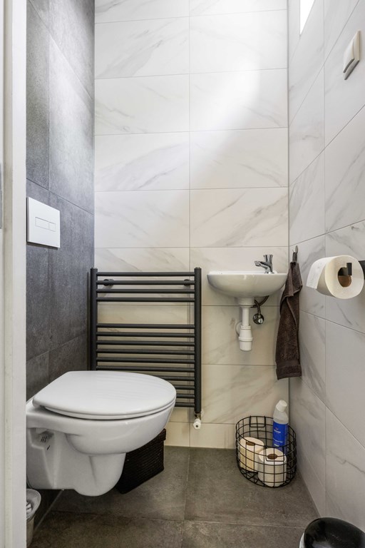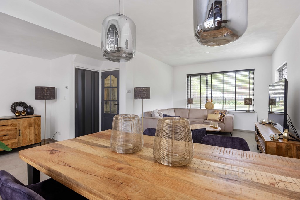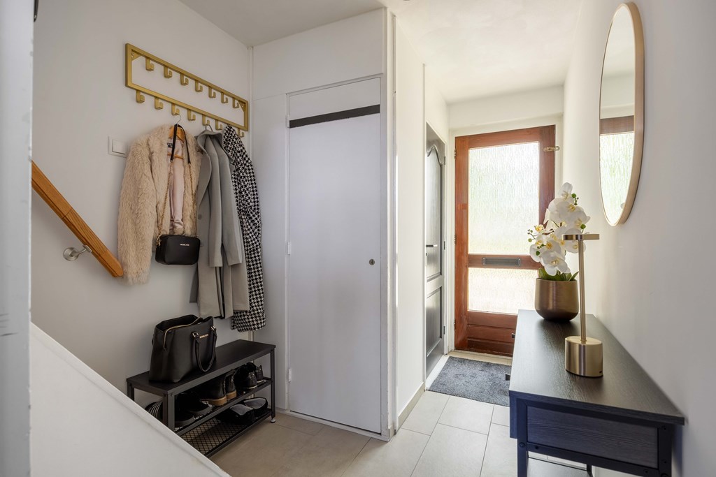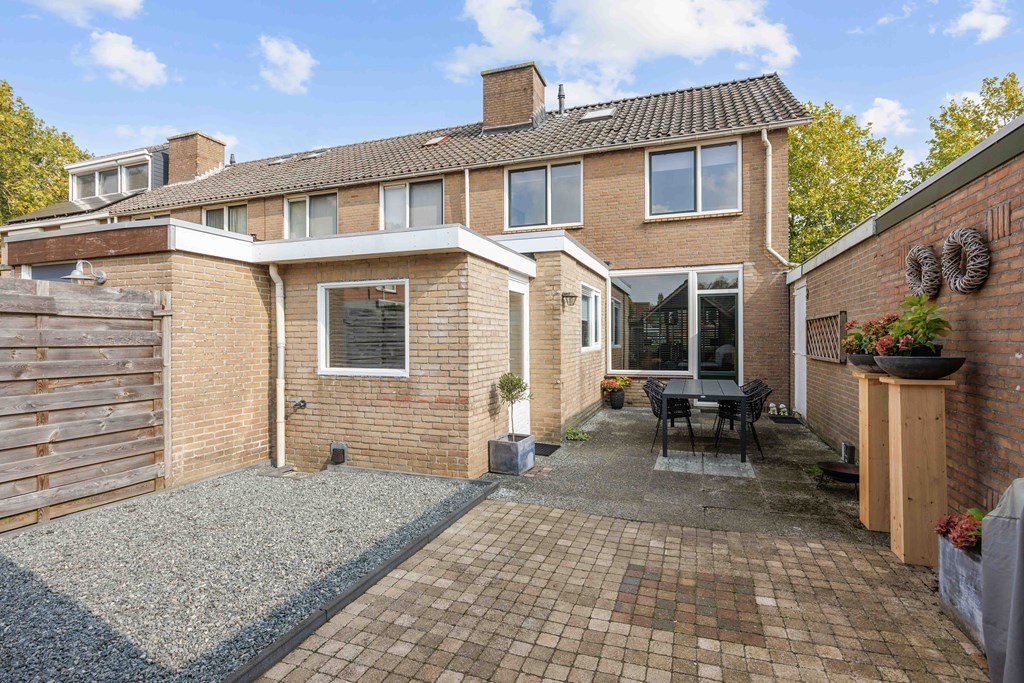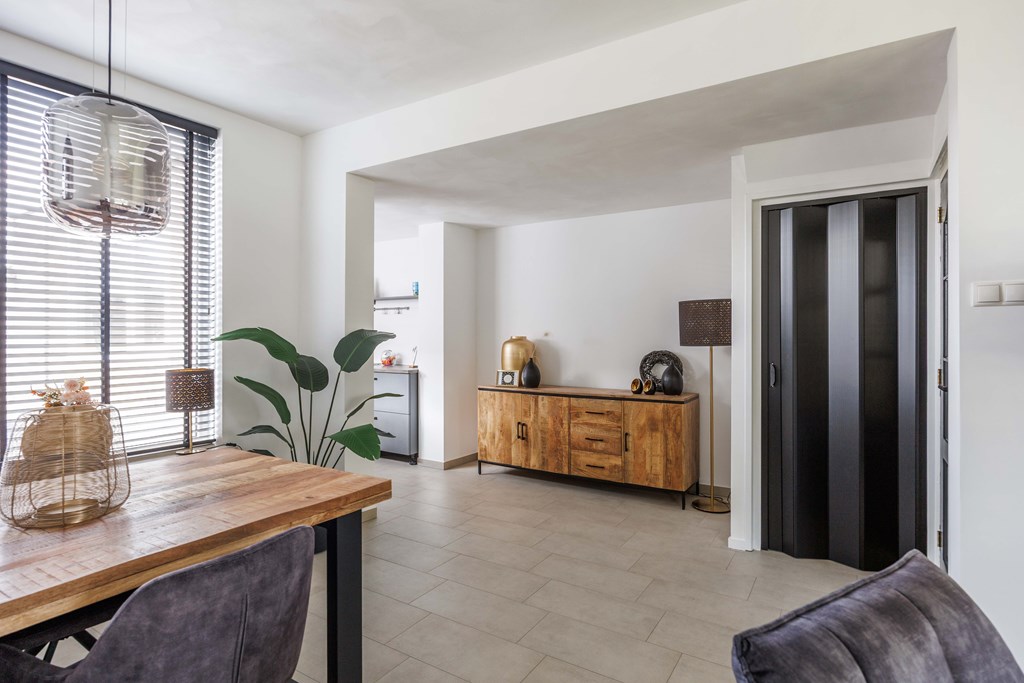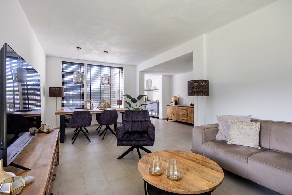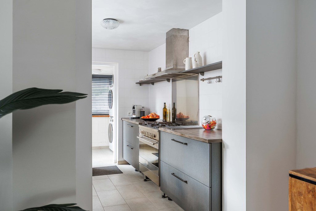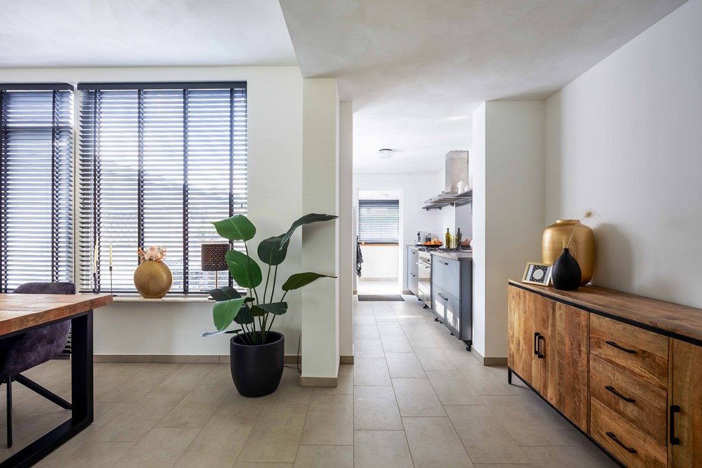 Binnenkomst – Licht, ruimte en een warm welkom Stap binnen via de hal waar meteen opvalt hoe netjes en verzorgd alles is. Hier vind je niet alleen de meterkast, maar ook de trapopgang naar. De toiletruimte is voorzien van een modern wandcloset en fonteintje. L-vormige woonkamer – Jouw centrale ontmoetingsplek Ben jij van het type dat houdt van lekker lang natafelen met vrienden of met de kids op de bank een filmavondje? Dan doet de ruime, lichte L-vormige woonkamer jouw hart vast sneller kloppen. Dankzij de grote raampartijen komt het daglicht hier overvloedig binnen, en de terrasdeur zorgt ervoor dat je ’s zomers zo het frisse buiten naar binnen haalt. Altijd al gedroomd van een plek waar geleefd mag worden? Check! Moderne keuken – Koken wordt een feestje De halfopen keuken is helemaal van nu en heeft door de dubbele opstelling lekker veel werkruimte. Bereid met gemak de lekkerste maaltijden, want aan apparatuur geen gebrek: een vaatwasser, fornuis met afzuiging, koelkast en zelfs een aparte boiler staan voor je klaar. Echte thuiskoks kunnen hier hun geluk niet op, terwijl je dankzij het halfopen karakter altijd in contact blijft met de woonkamer. Praktische bijkeuken – Was doen was nog nooit zo makkelijk Aansluitend aan de keuken ligt de royale bijkeuken. Dankzij de witgoedaansluiting kun je hier fijn je was draaien en eventueel extra voorraad kwijt. De achterentree maakt deze ruimte bovendien ideaal voor natte laarzen, sportspullen of vieze hondenpootjes. Handig toch?