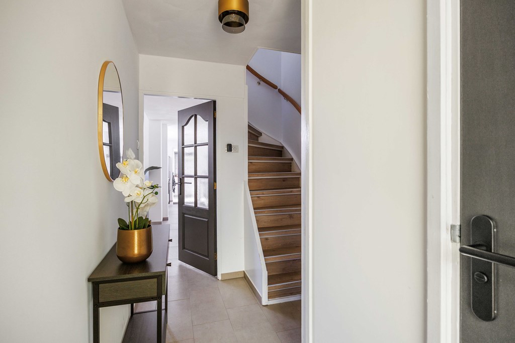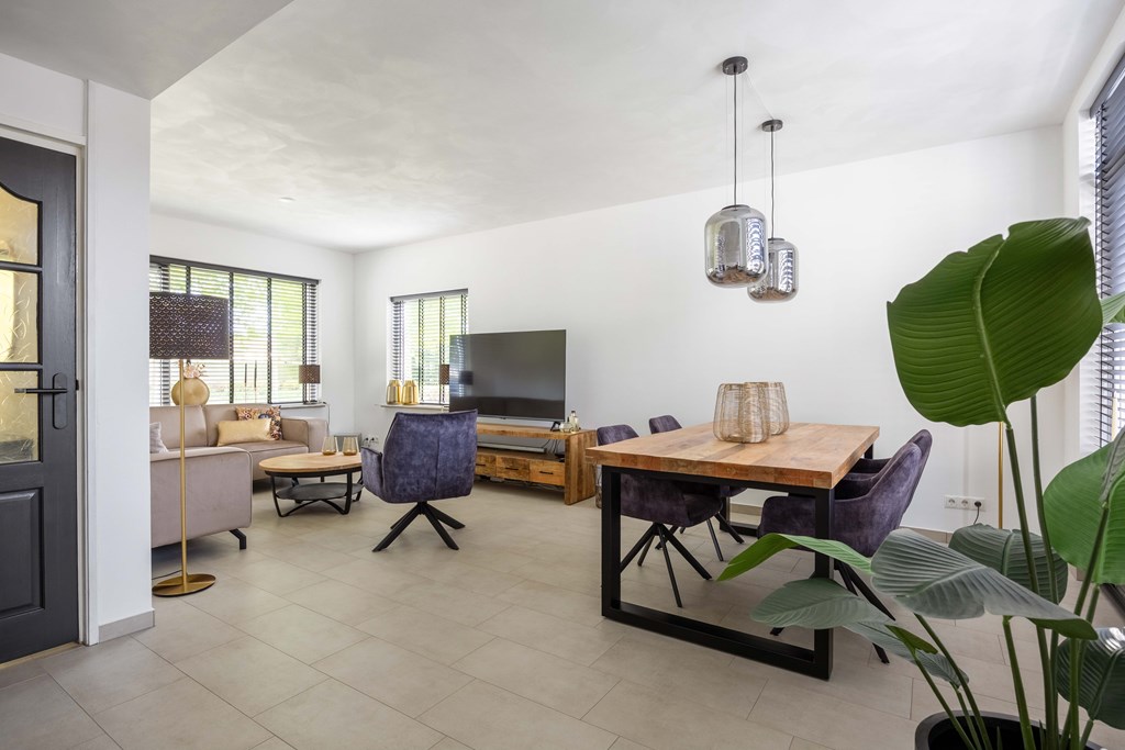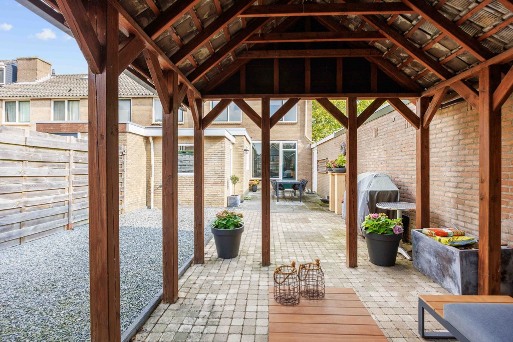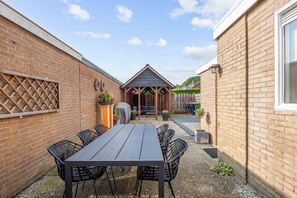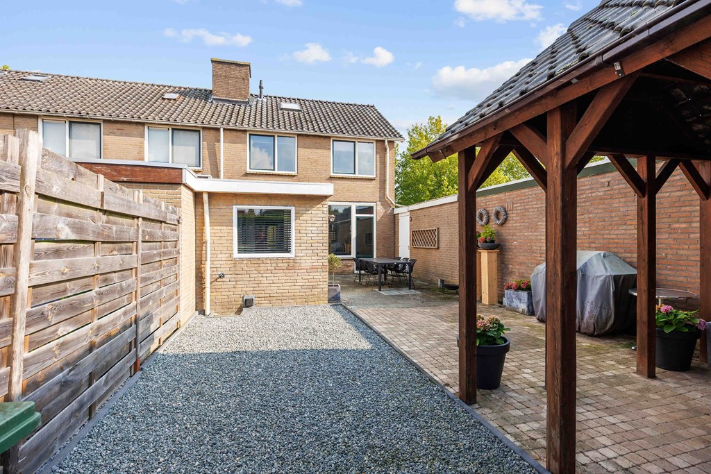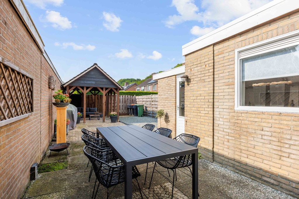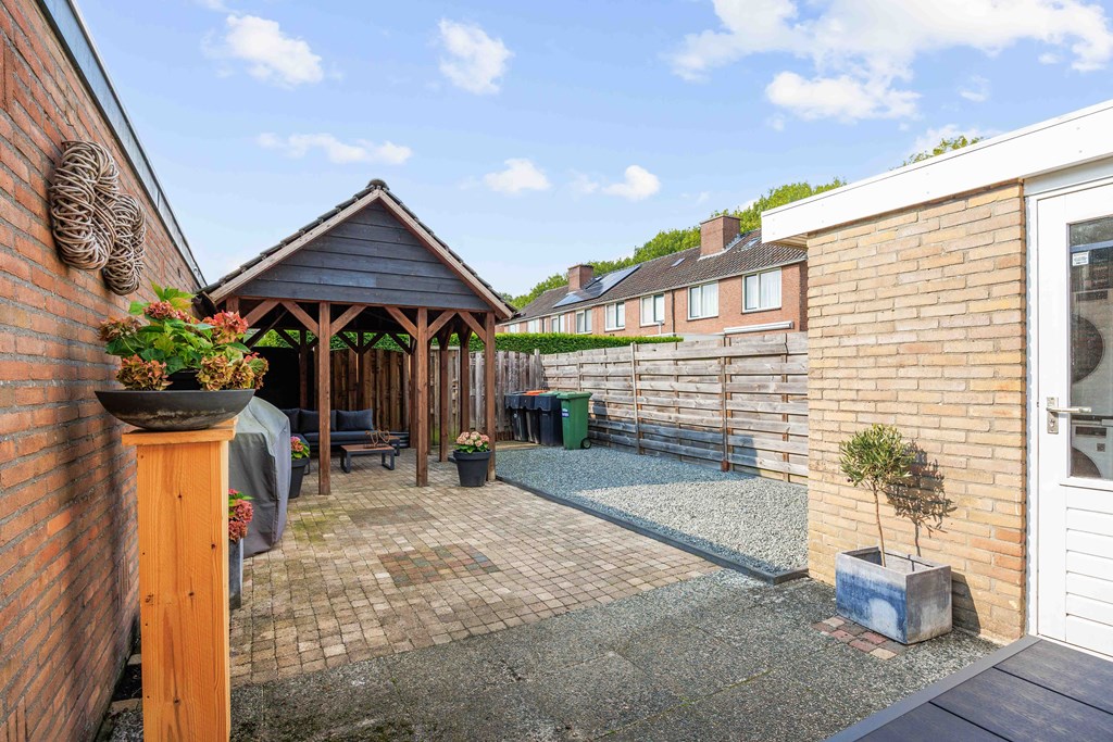 Binnenkomst – Licht, ruimte en een warm welkom Stap binnen via de hal waar meteen opvalt hoe netjes en verzorgd alles is. Hier vind je niet alleen de meterkast, maar ook de trapopgang naar. De toiletruimte is voorzien van een modern wandcloset en fonteintje. L-vormige woonkamer – Jouw centrale ontmoetingsplek Ben jij van het type dat houdt van lekker lang natafelen met vrienden of met de kids op de bank een filmavondje? Dan doet de ruime, lichte L-vormige woonkamer jouw hart vast sneller kloppen. Dankzij de grote raampartijen komt het daglicht hier overvloedig binnen, en de terrasdeur zorgt ervoor dat je ’s zomers zo het frisse buiten naar binnen haalt. Altijd al gedroomd van een plek waar geleefd mag worden? Check! Moderne keuken – Koken wordt een feestje De halfopen keuken is helemaal van nu en heeft door de dubbele opstelling lekker veel werkruimte. Bereid met gemak de lekkerste maaltijden, want aan apparatuur geen gebrek: een vaatwasser, fornuis met afzuiging, koelkast en zelfs een aparte boiler staan voor je klaar. Echte thuiskoks kunnen hier hun geluk niet op, terwijl je dankzij het halfopen karakter altijd in contact blijft met de woonkamer. Praktische bijkeuken – Was doen was nog nooit zo makkelijk Aansluitend aan de keuken ligt de royale bijkeuken. Dankzij de witgoedaansluiting kun je hier fijn je was draaien en eventueel extra voorraad kwijt. De achterentree maakt deze ruimte bovendien ideaal voor natte laarzen, sportspullen of vieze hondenpootjes. Handig toch?