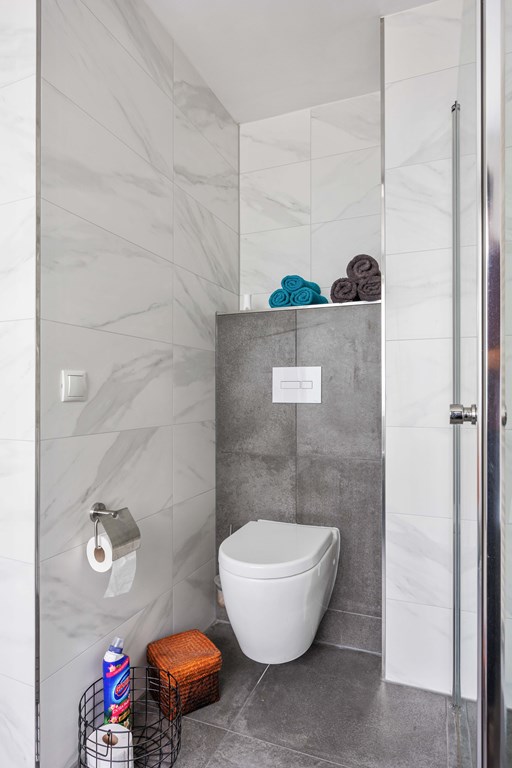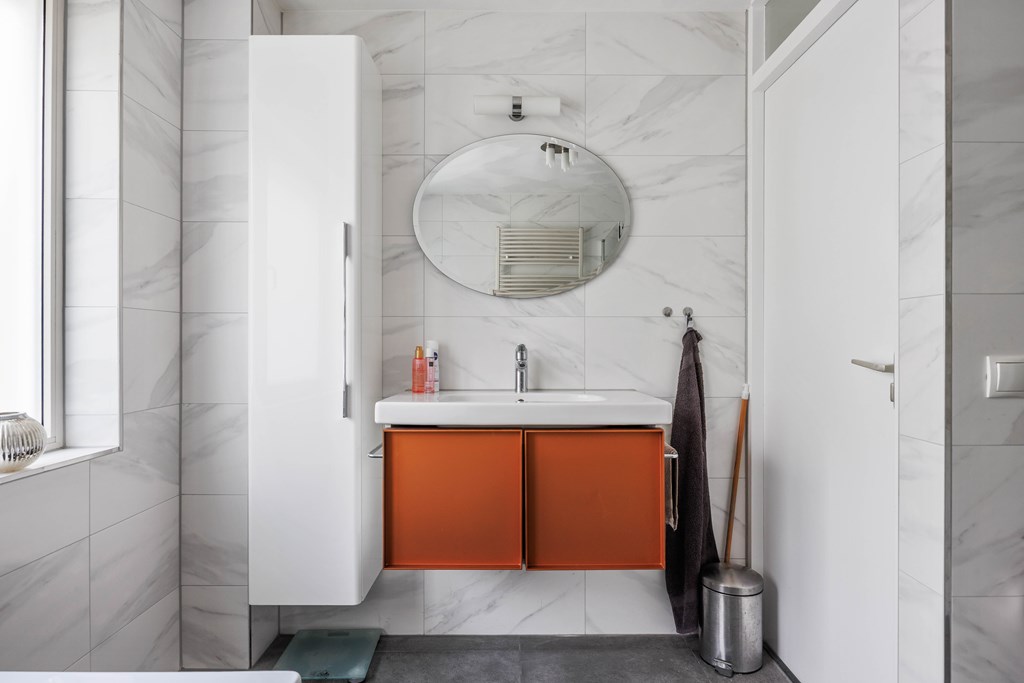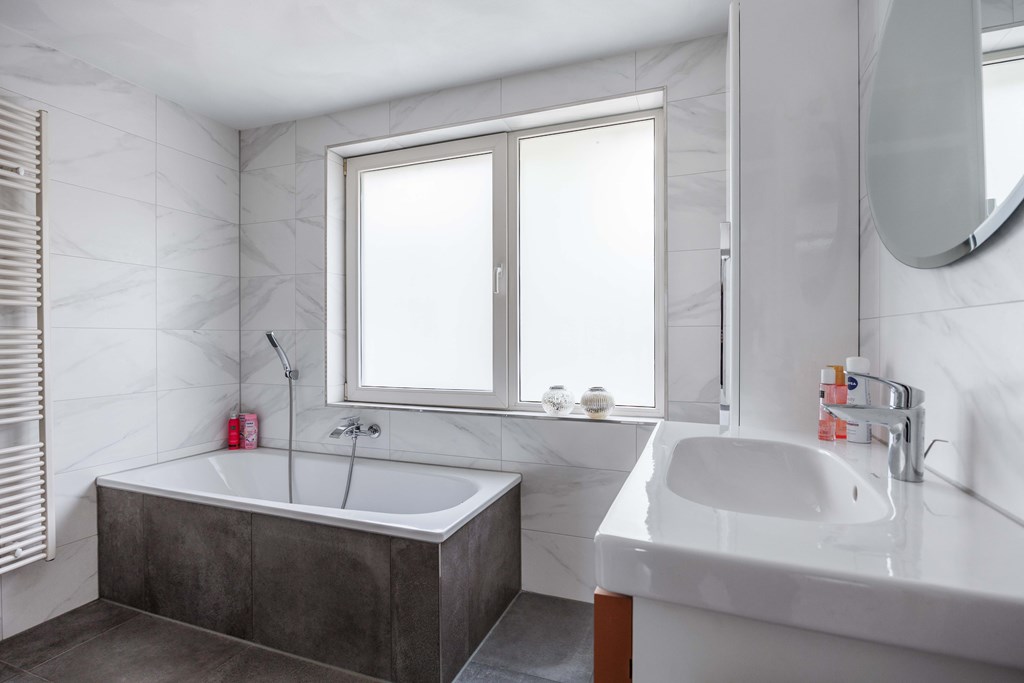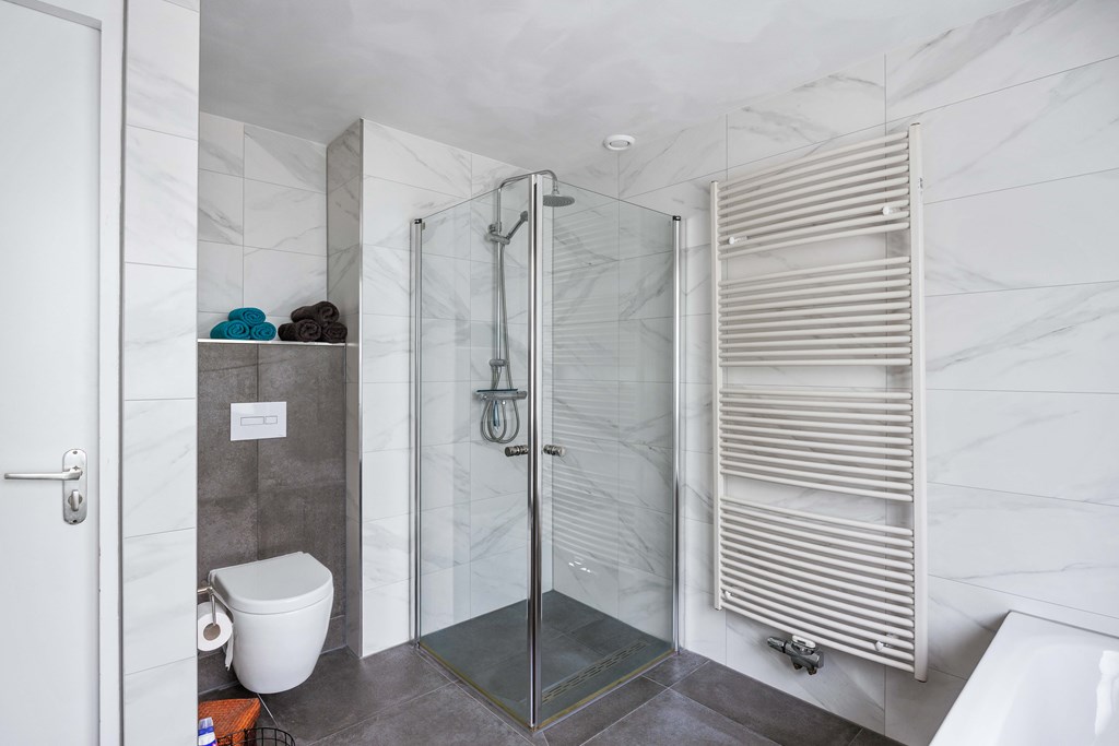 Bovenverdieping – Drie verrassend ruime slaapkamers Op de eerste verdieping tref je een lichte overloop met toegang tot drie goed bemeten slaapkamers. Ruimte genoeg dus, of je nu iedere kinderkamer een eigen thema wilt geven, een thuiswerkplek zoekt of gewoon fijne logeermogelijkheden wenst. Alle vertrekken zijn slim ingedeeld en eenvoudig aan te passen aan jullie wensen. Wellness-badkamer – Start de dag in luxe En dan de badkamer… Wauw! Hier wil je best een kwartiertje langer blijven hangen. Begin fris onder de moderne douche, fris je op bij het wastafelmeubel, of gun jezelf een relaxmoment in het ligbad. De designradiator maakt het geheel helemaal af en zorgt ervoor dat je handdoek altijd lekker warm is.