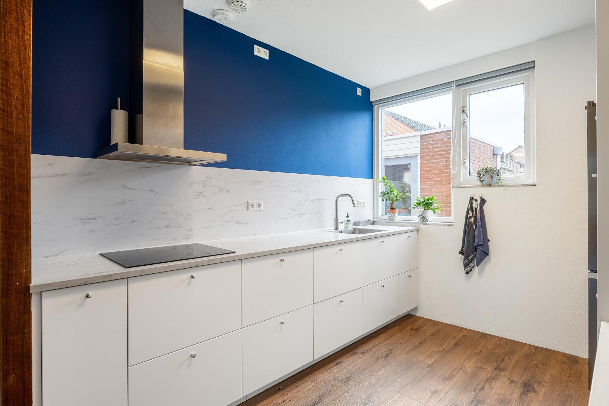Op de verdieping vind je een functionele badkamer met douche, wastafel en wasmachineaansluiting; drie slaapkamers en een bergkast met cv-opstelling.