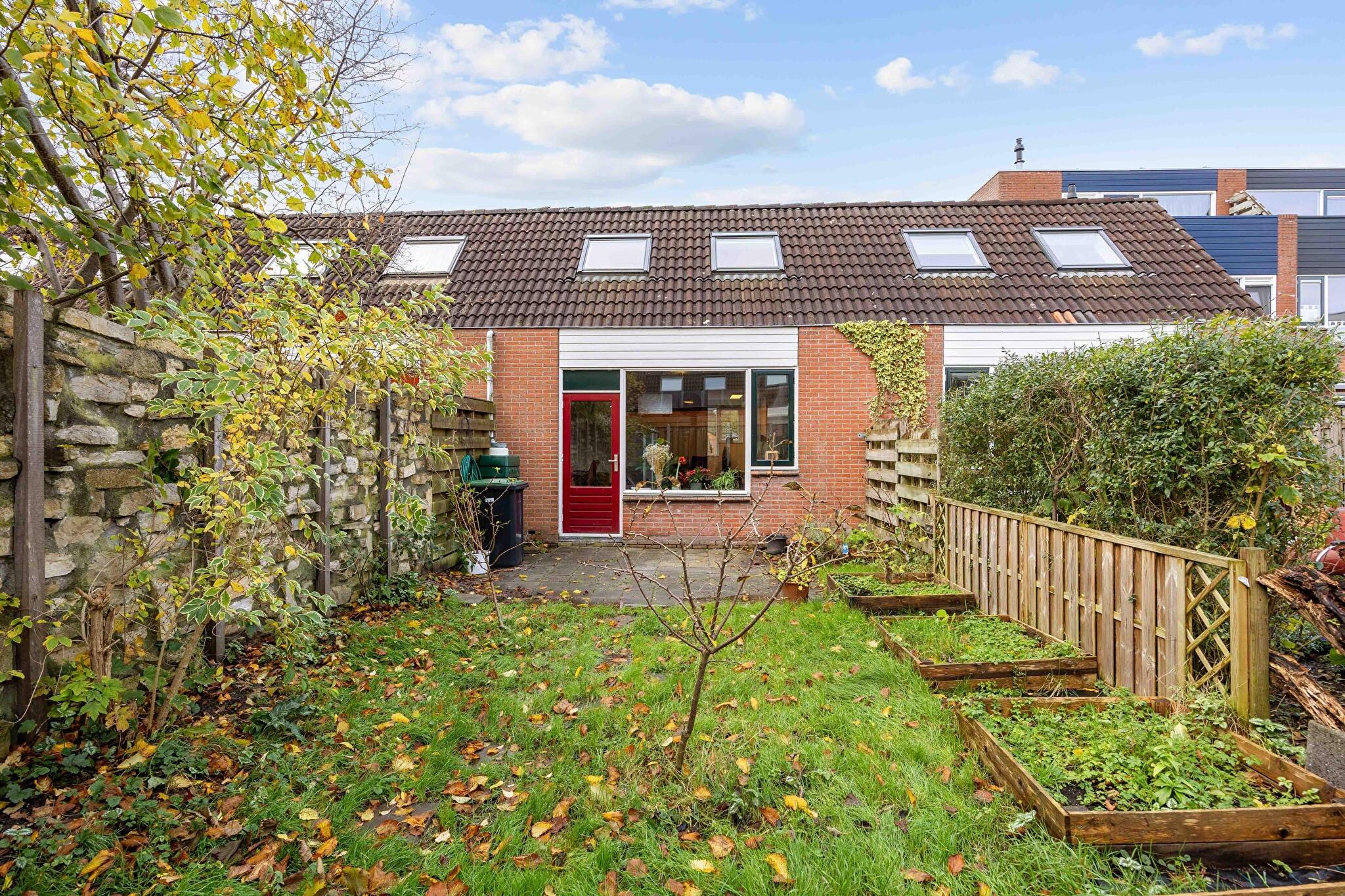 De achtertuin is te bereiken middels woonkamerdeur en is gelegen op het oosten. Aan de achtergevel is een terras en achter in de tuin een tuinhuisje welke handig is voor het opbergen van je tuingereedschap.