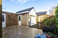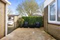 Aan de voorzijde en aan de zijkant is er een kleine tuin en verhardingen voor het terras en de oprit naar de garage.
