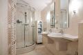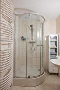 Ook de badkamer is op de verdieping en is voorzien van douche-cabine, dubbele wastafel, toilet en design radiator.