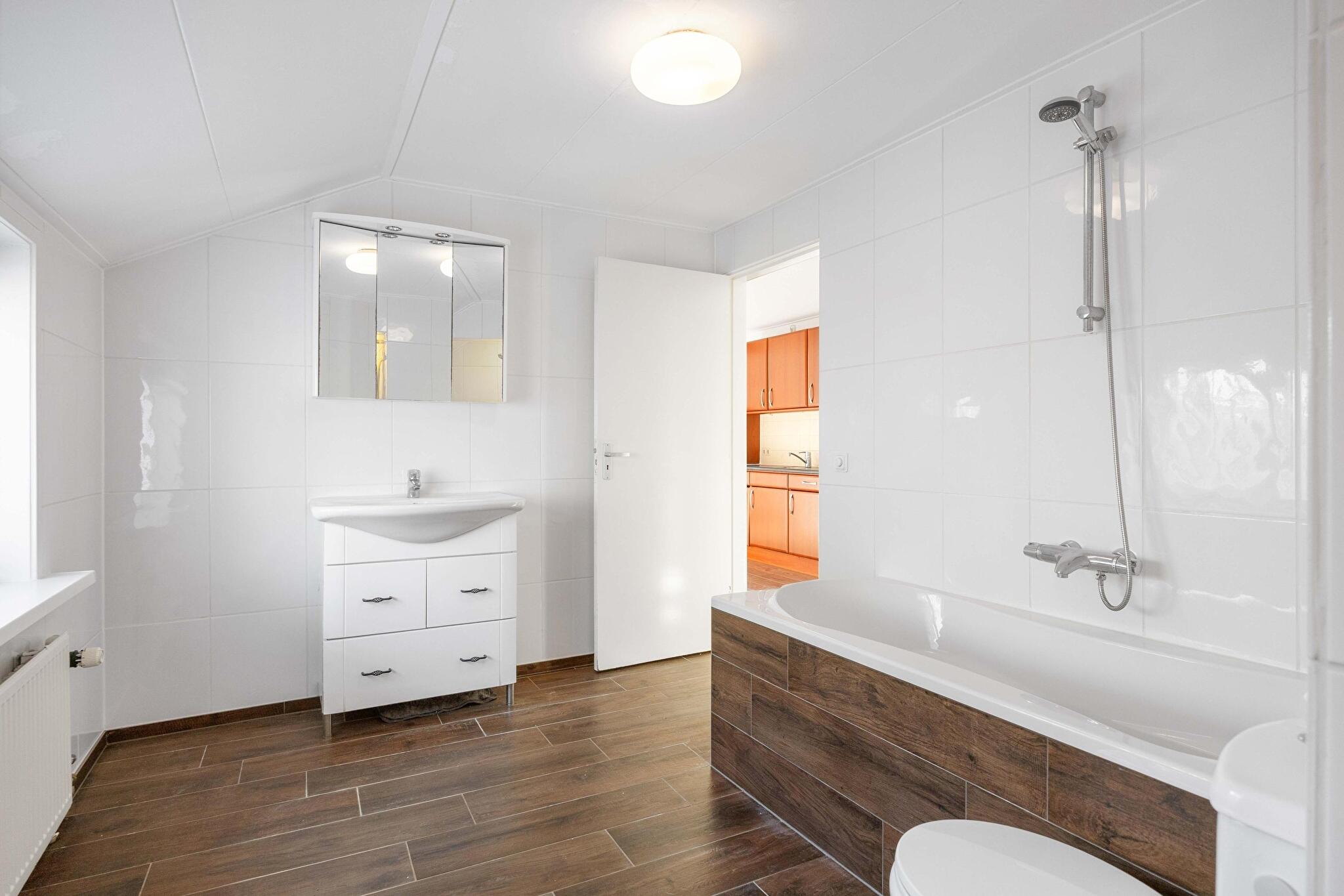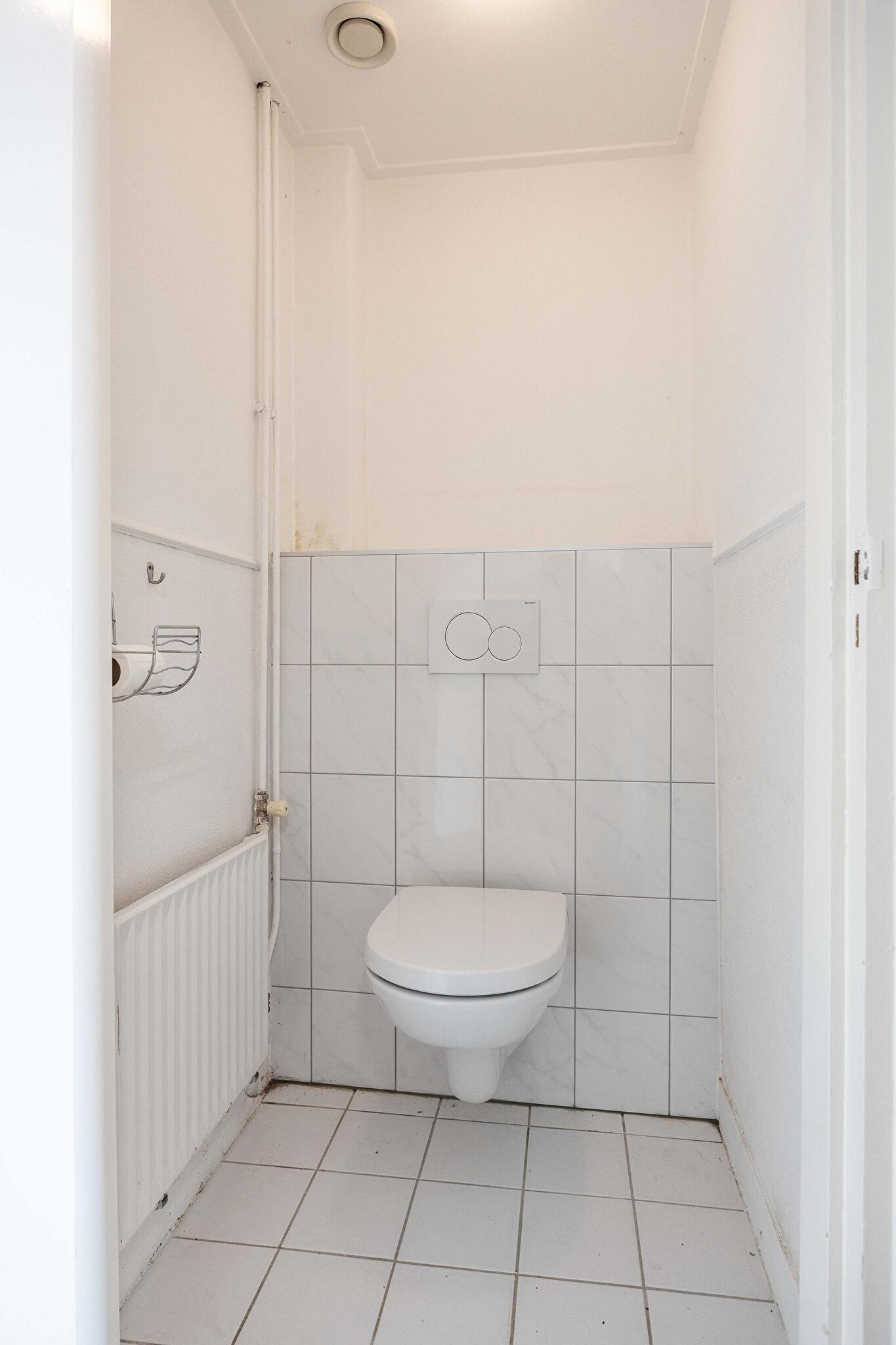 Via de gang loop je ook zo naar buiten aan de achterkant, lekker praktisch als je de tuin in wilt (of je fiets wilt pakken). Nog een pluspunt is de aparte toiletruimte met modern wandcloset; nooit meer gedoe met logees die staan te dringen bij de badkamer.