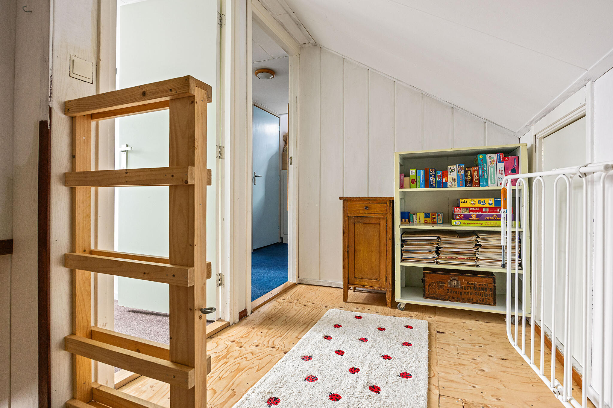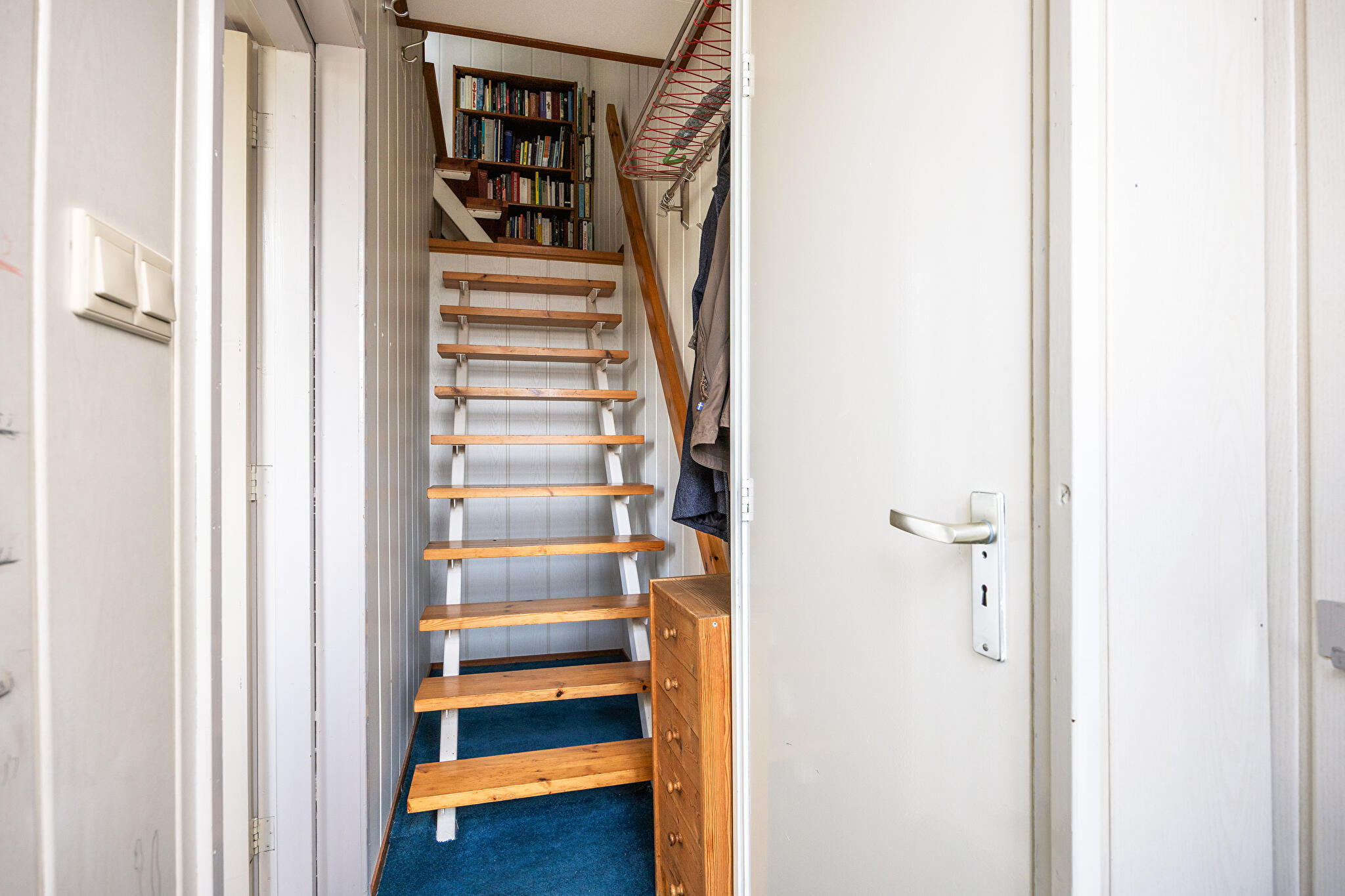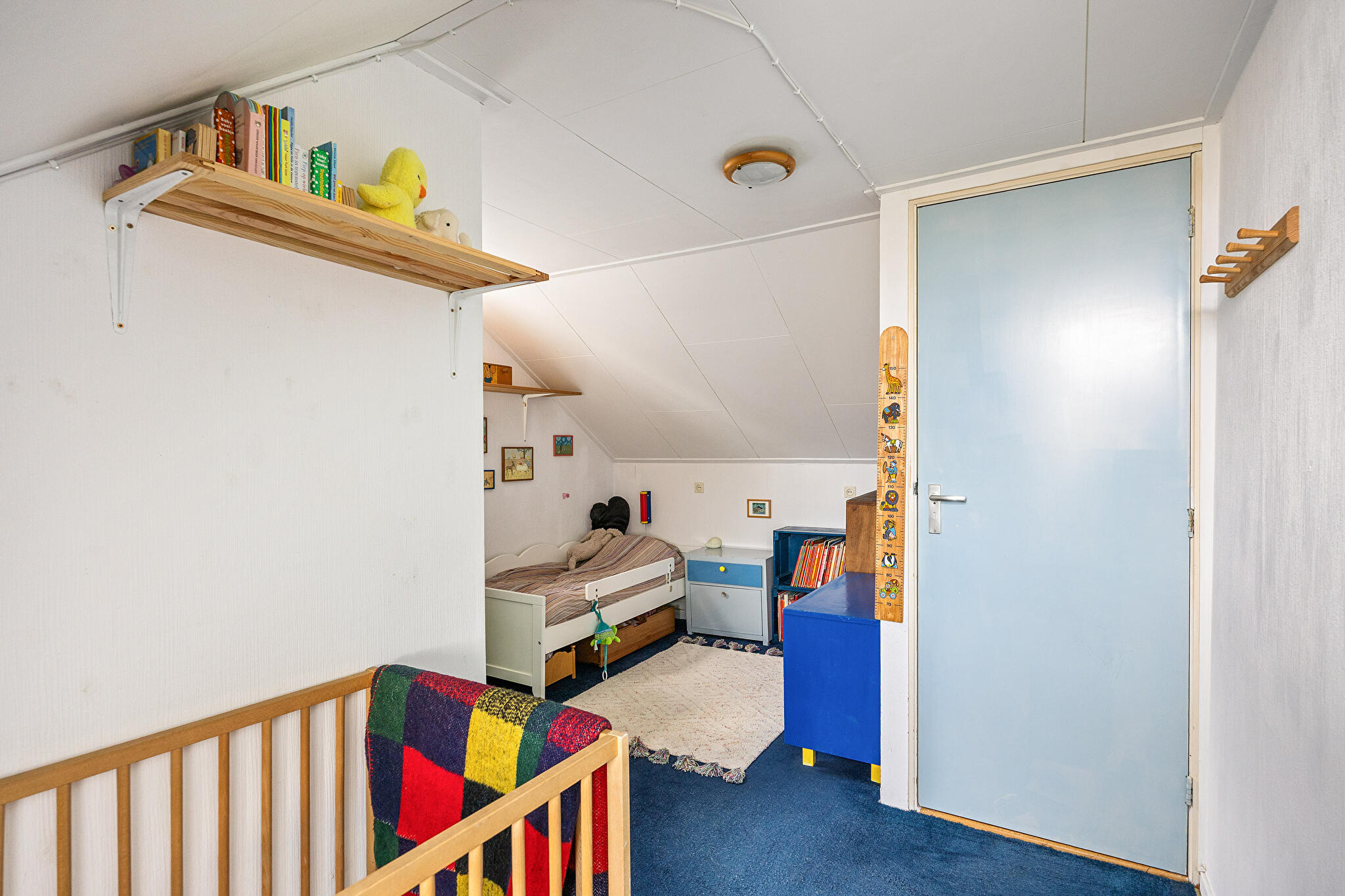 De verdieping beschikt over twee slaapkamers, waarvan één is voorzien van een diepe vaste inbouwkast. Op de overloop bevindt zich achter het knieschot een ruime vliering waar zich de opstelplaats van de cv-ketel bevindt.