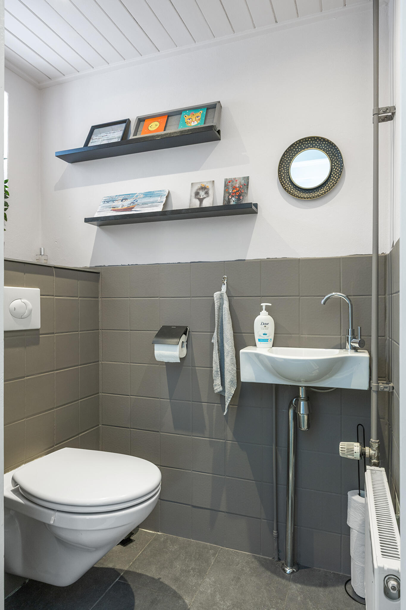 Wat direct opvalt bij binnenkomst, is de overzichtelijke, slimme indeling van het huis. In de hal/entree word je hartelijk verwelkomd. Meteen links bevindt zich de stijlvolle toiletruimte, compleet met modern wandcloset en fontein – ideaal voor gasten, maar zeker ook praktisch voor het hele gezin.