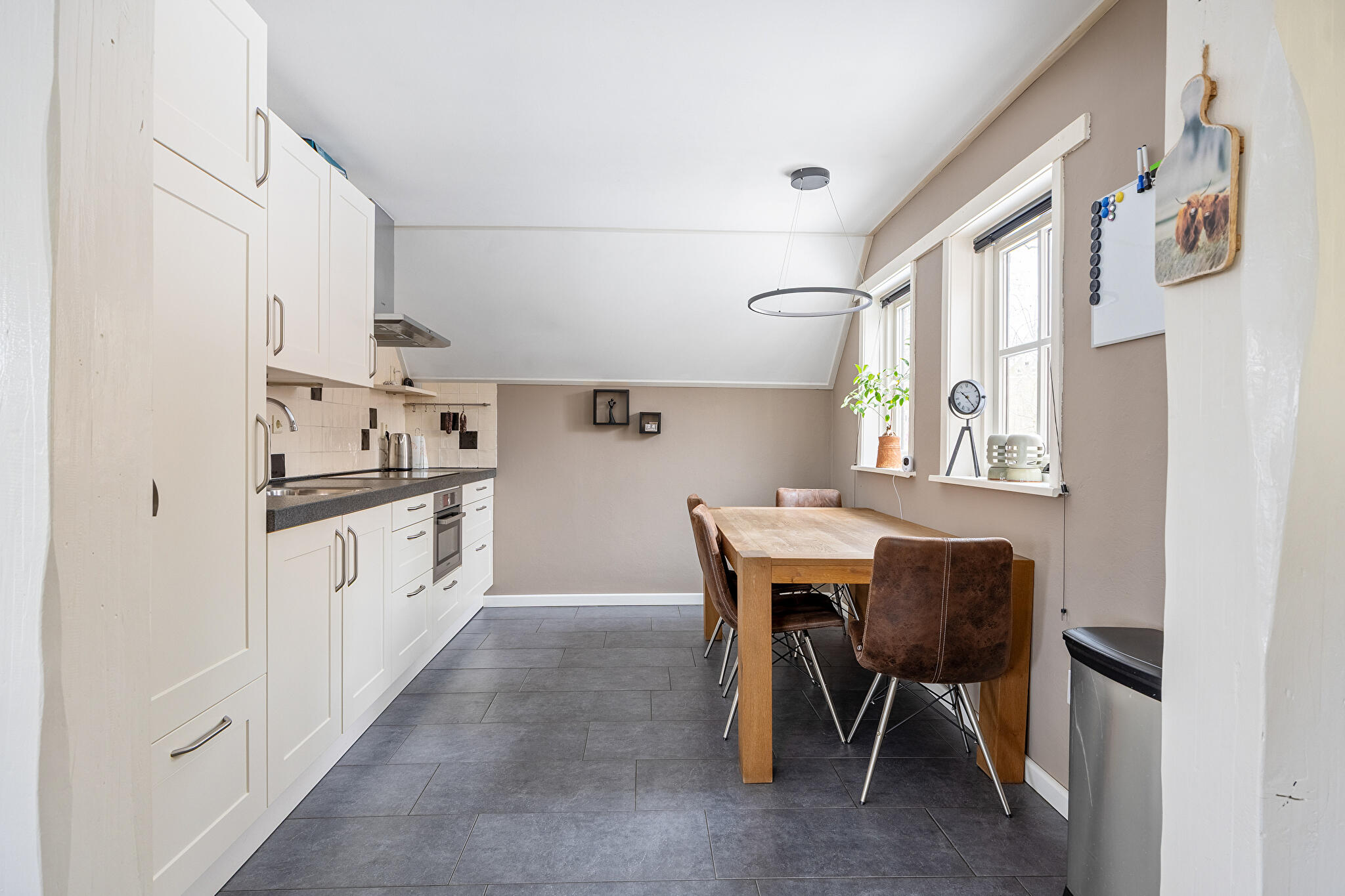 De echte eyecatcher van dit huis? Dat is zonder twijfel de ruime woonkamer. Met volle teugen geniet je hier van een fenomenaal uitzicht over de wierde én je eigen tuin. Grote ramen vullen de kamer met licht en creëren dat fijne, vrije gevoel waar iedereen naar verlangt. Zie je het al voor je: op een regenachtige middag met een goed boek bij het raam, of ’s zomers met de tuindeuren open, terwijl de kinderen zorgeloos spelen?
