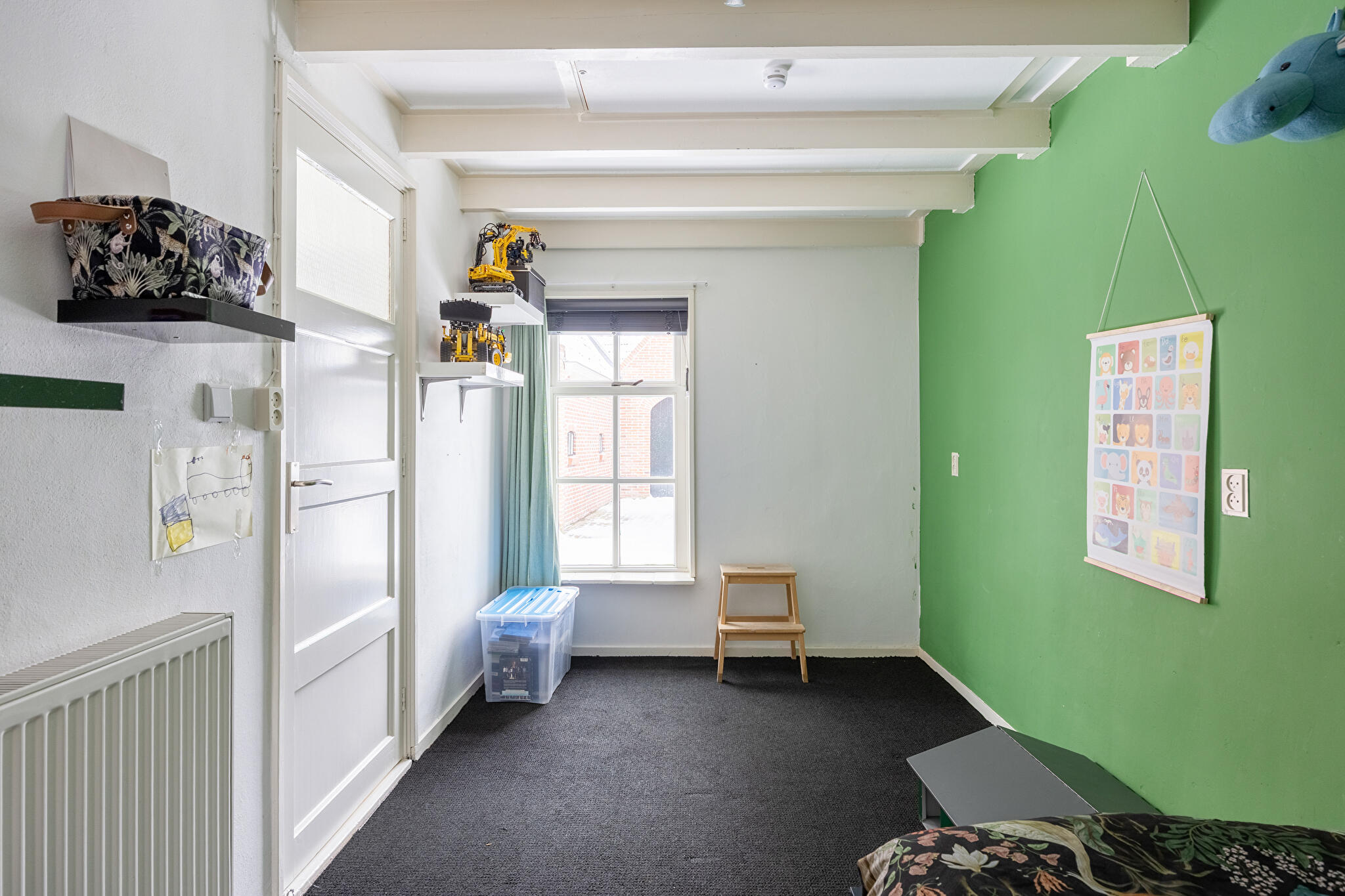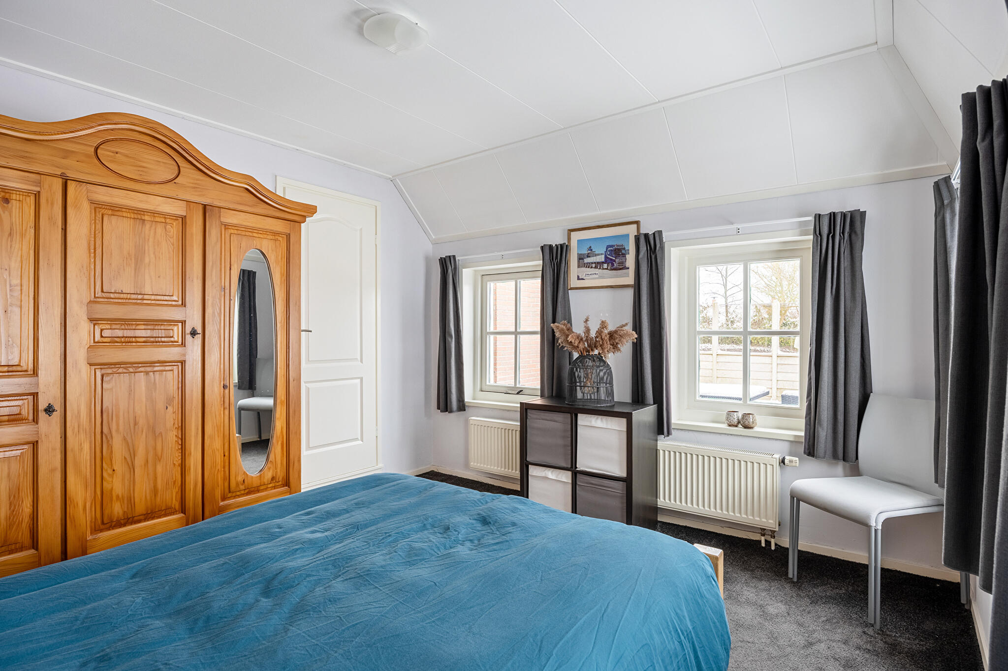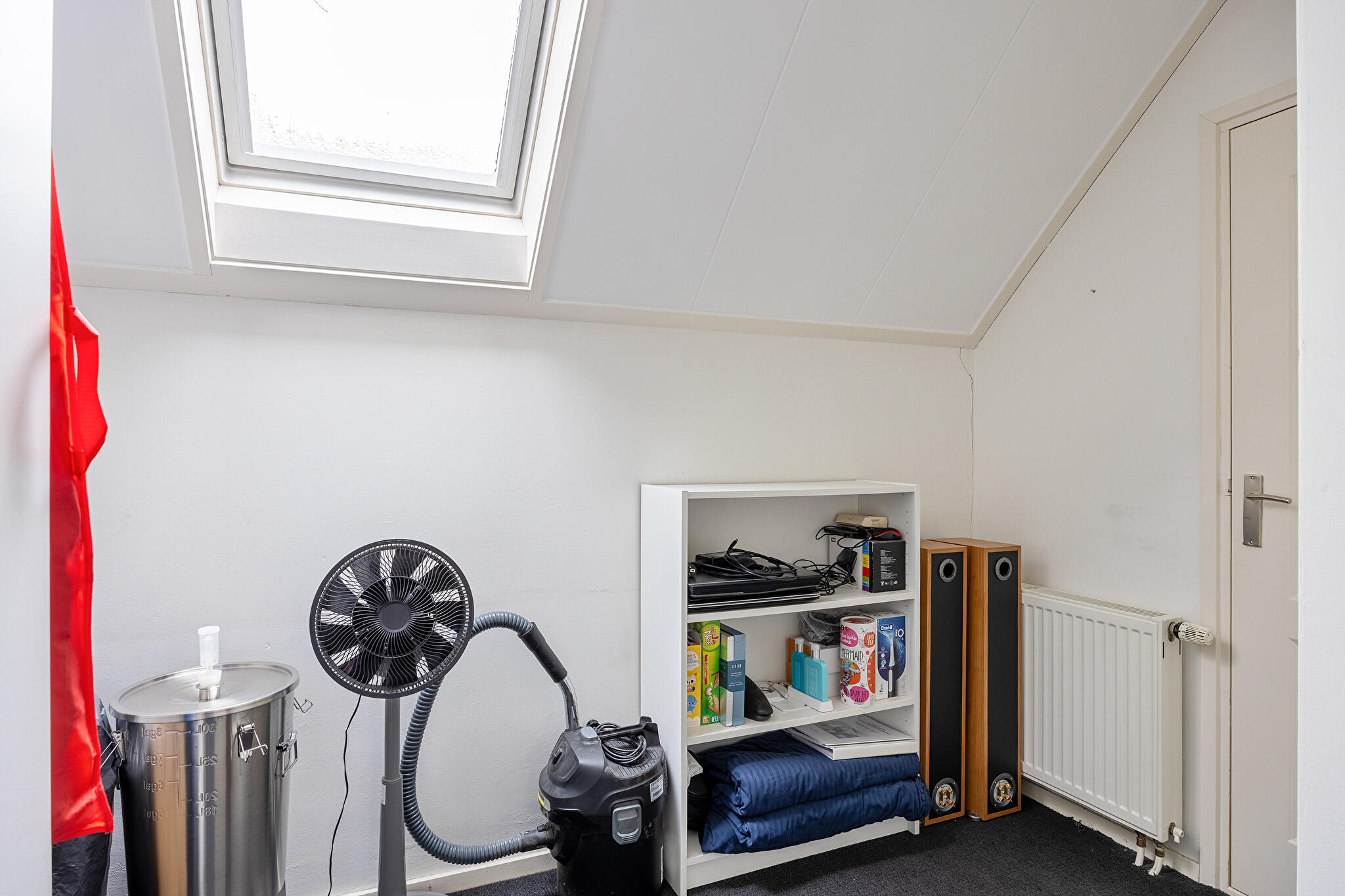 De eerste slaapkamer ligt pal naast de hal en beschikt over een vaste kast, waarin je moeiteloos al je kleding kwijt kunt. Bovendien is hier de toegang tot de zolder, via een handige vlizotrap – handig voor seizoensspullen of als extra bergruimte.