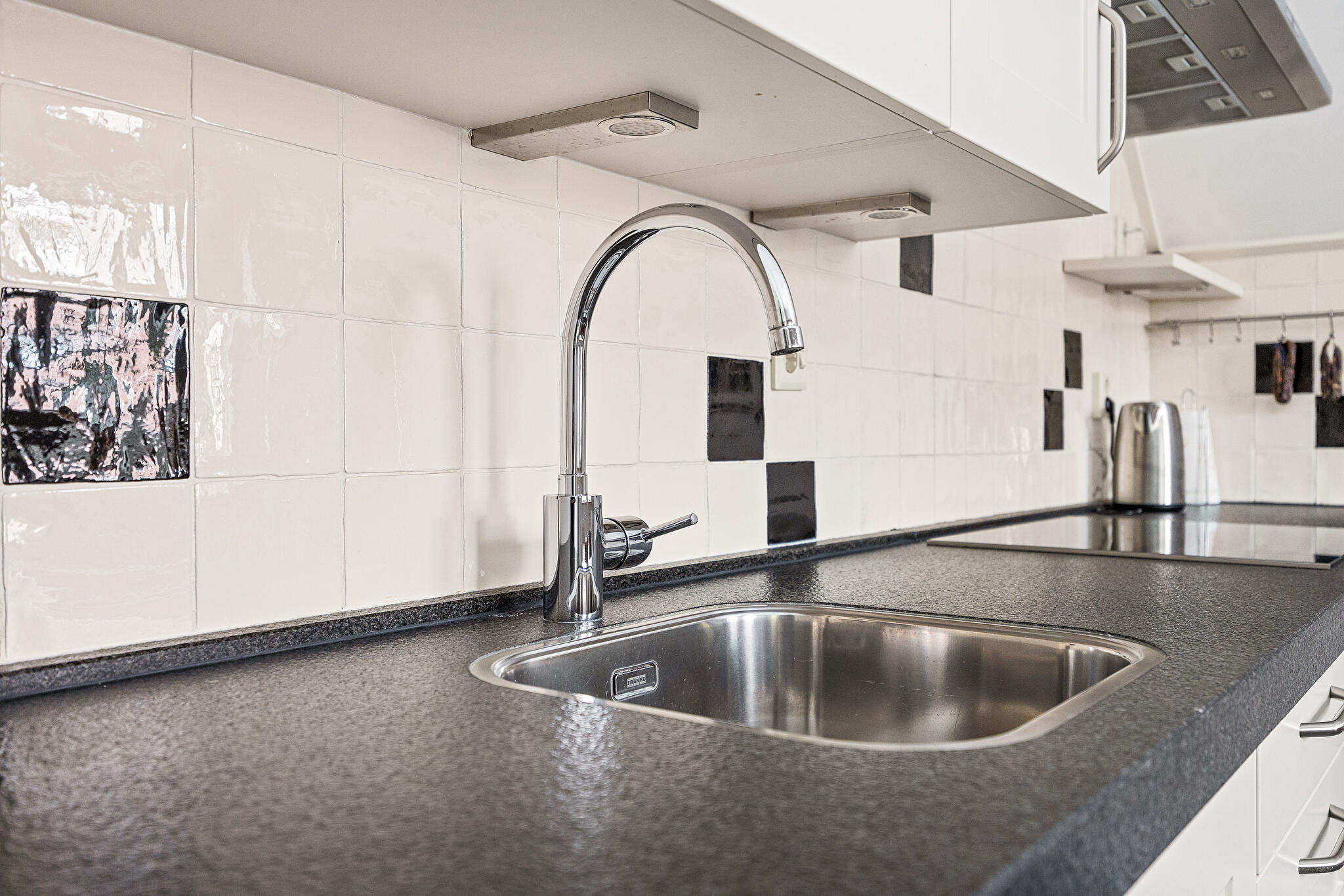 Direct aan de woonkamer grenst de riante woonkeuken, het kloppend hart van het huis. De rechte keukenopstelling is uitgerust met een moderne inductiekookplaat, combimagnetron, krachtige afzuigkap en een praktische koeler. Hier bereid je moeiteloos de lekkerste maaltijden, terwijl je met vrienden of familie gezellig bijpraat.