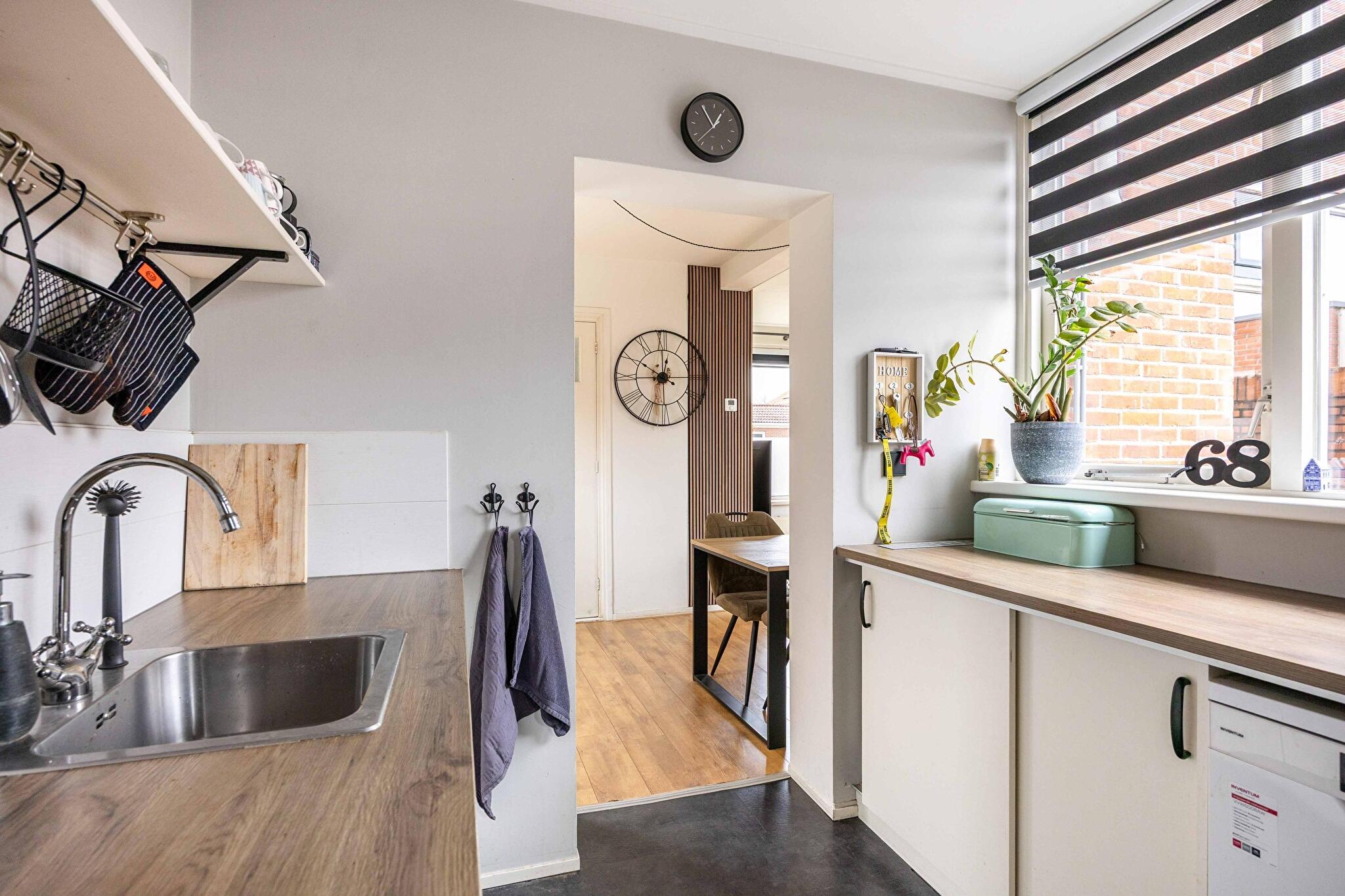 Direct naast de woonkamer lonkt de keuken. Verras jezelf met een dubbele opstelling, dus werkoppervlak genoeg voor de nieuwste recepten. Het fornuis heeft vier pitten, de vaatwasser doet trouw zijn werk en dankzij de afzuiging blijf je altijd in de frisse lucht koken. Goed nieuws voor de hobbykok! De bijkeuken grenst praktisch aan de keuken. Hier vind je de witgoedaansluiting, de CV-ketel (Nefit 2018, eigendom) en dankzij de handige achterentree loop je na het klussen of tuinieren niet je hele huis door.