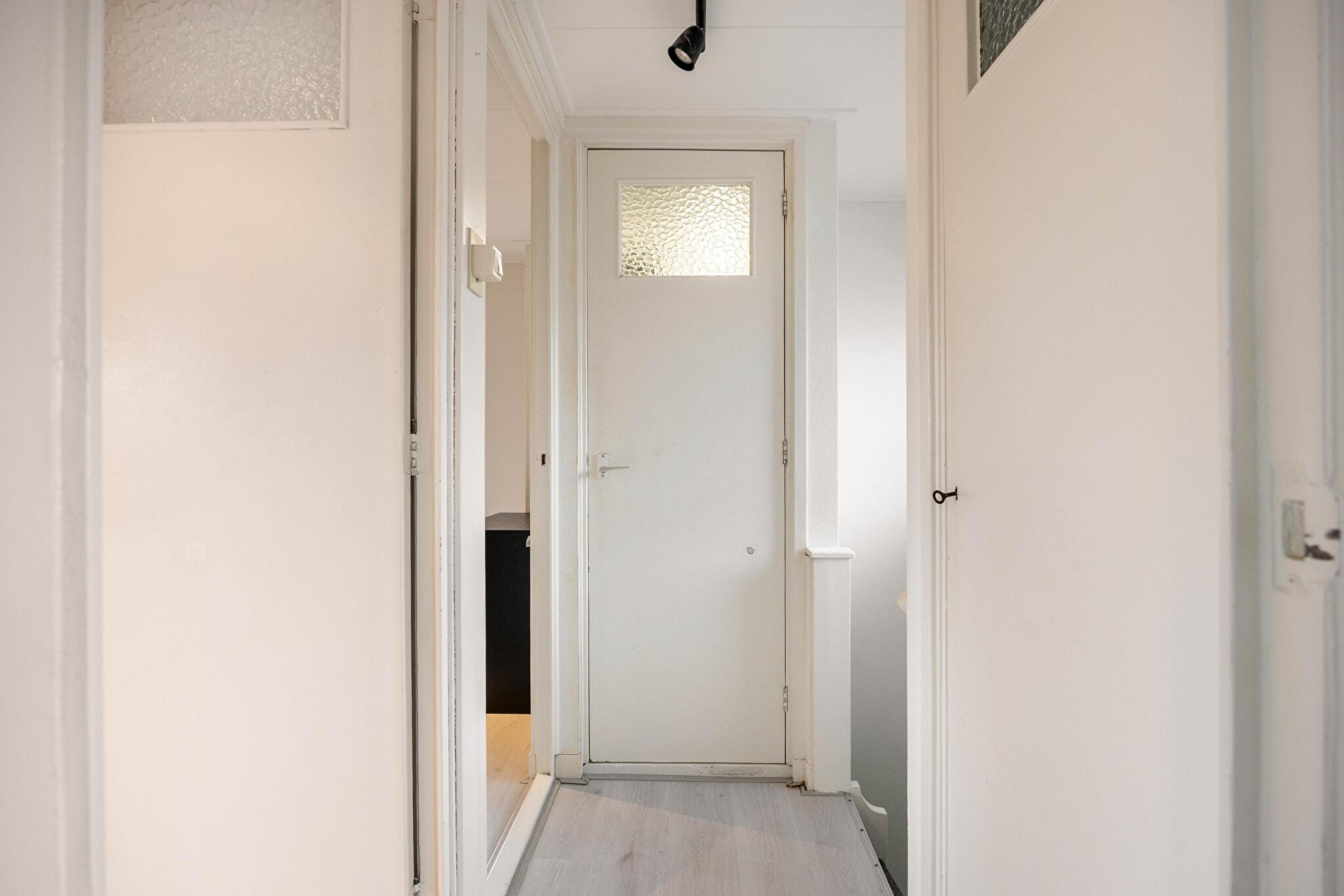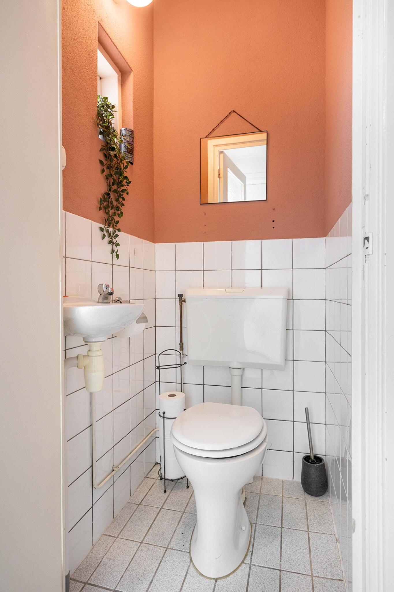 Bij binnenkomt via de hal, merk je meteen dat deze woning je allerlei praktische gemakken biedt. Ruime entree, directe toegang tot de meterkast en een knusse trapkast die niet alleen handig is voor de stofzuiger, maar die ook als keldertje dienst doet. De trapopgang leidt je vlot naar boven, en vanuit de hal is er een separate toiletruimte met fonteintje.