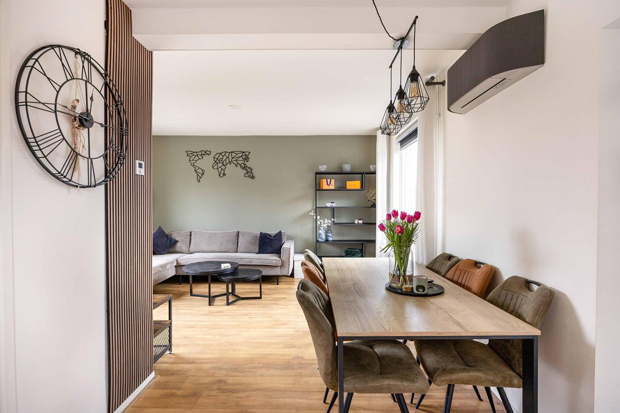 Zodra je binnenstapt, valt het direct op: de voorzieningen zijn functioneel, de indeling is overzichtelijk en elke ruimte baadt in natuurlijk licht. De woonkamer, gespiegeld aan de voortuin en straatzijde, nodigt uit tot gezellige avonden of knusse momenten samen. Door het raam kijk je uit over de brede straat, terwijl je in de keuken – praktisch en ruim – optimaal zicht hebt op de diepe achtertuin. Praktisch en gezellig gaan hier hand in hand, want ja, een woning wordt pas thuis als hij leefbaar is.