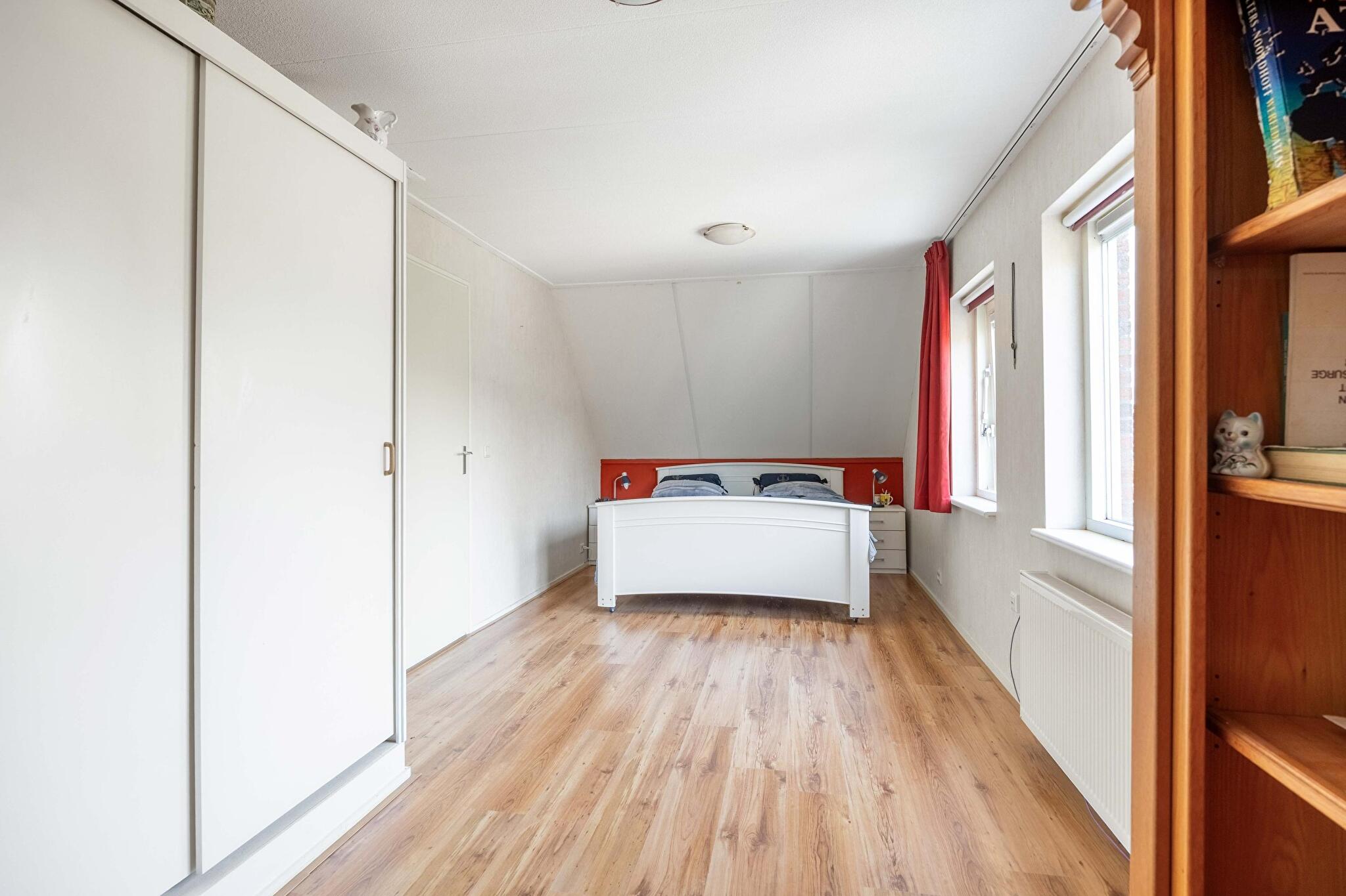 Ook boven tref je volop ruimte. De overloop geeft toegang tot maar liefst drie slaapkamers – iedereen een eigen plekje, ideaal voor gezinnen met opgroeiende kinderen. Er is een tweede badkamer aanwezig, voorzien van douchecabine, toilet en wastafel. Je zou kunnen zeggen dat deze enigszins gedateerd is, maar hij functioneert prima en biedt potentie om er helemaal jouw eigen draai aan te geven.