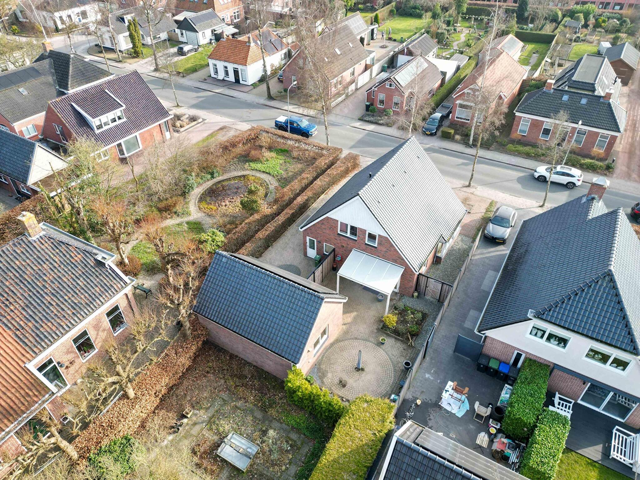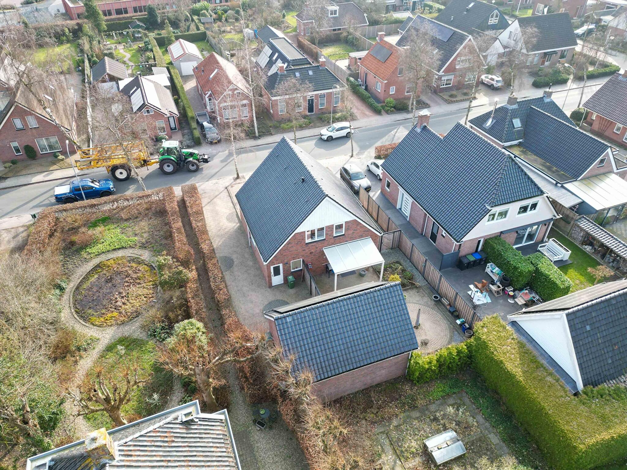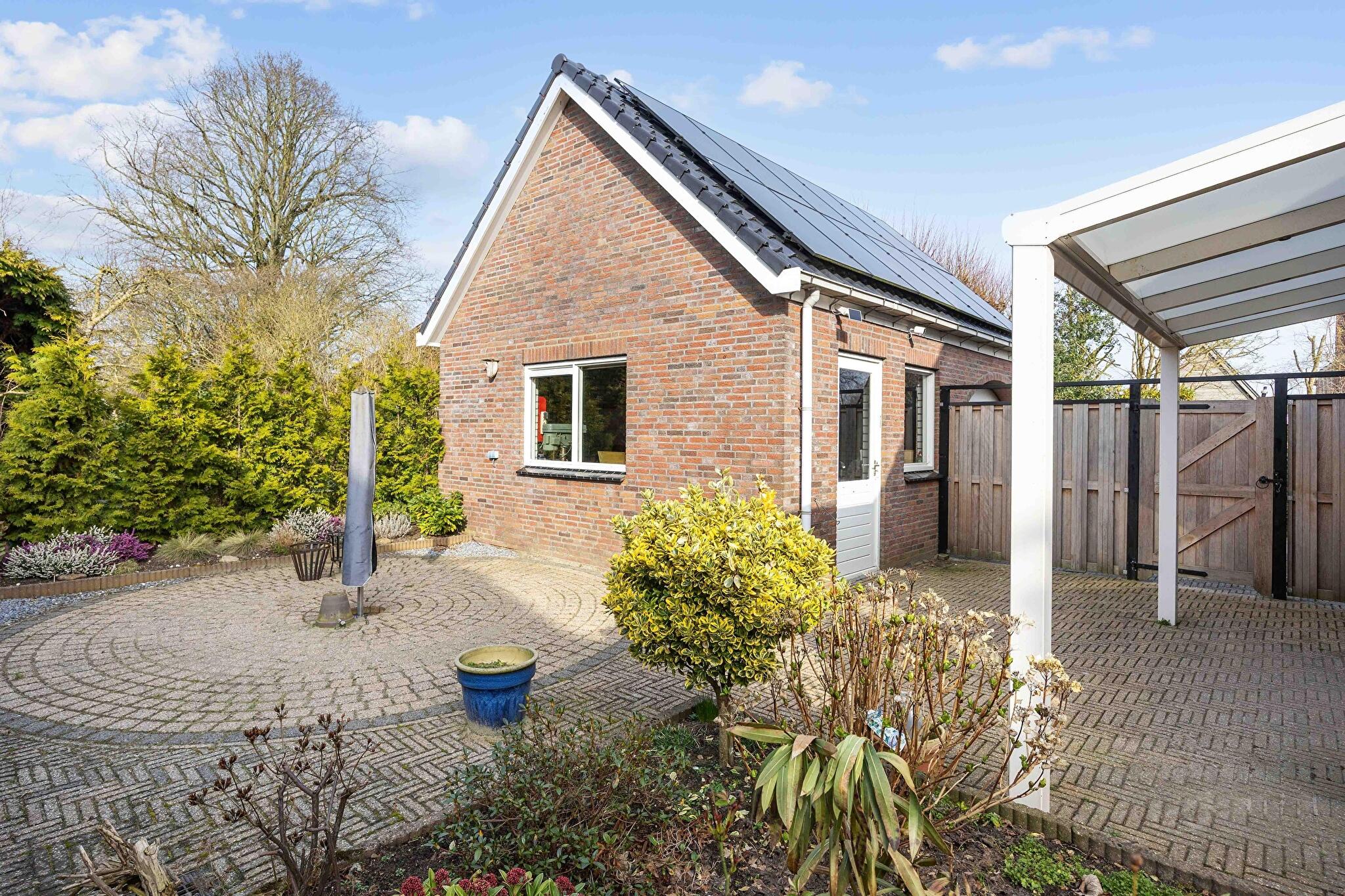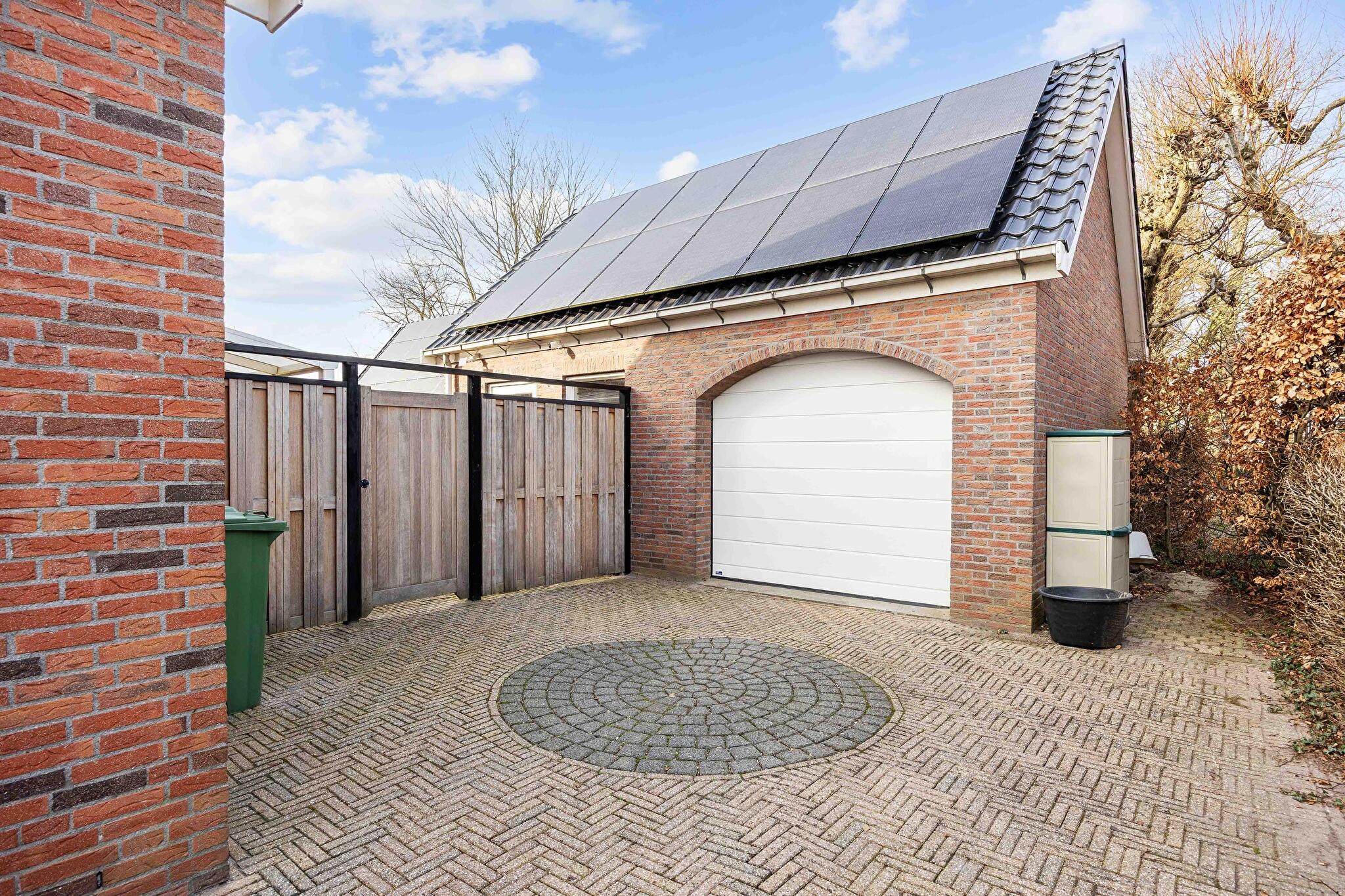 Achter het huis wacht een ware troef: een vrijstaande garage die niet onderdoet voor een kleine werkplaats. Met de ruime elektrische sectionaaldeur rij je moeiteloos naar binnen. Extra opslag nodig? De vliering is ruim opgezet. Hobbyisten, klussers of verzamelaars van fietsen, tuingereedschap of oldtimers kunnen hun hart ophalen.