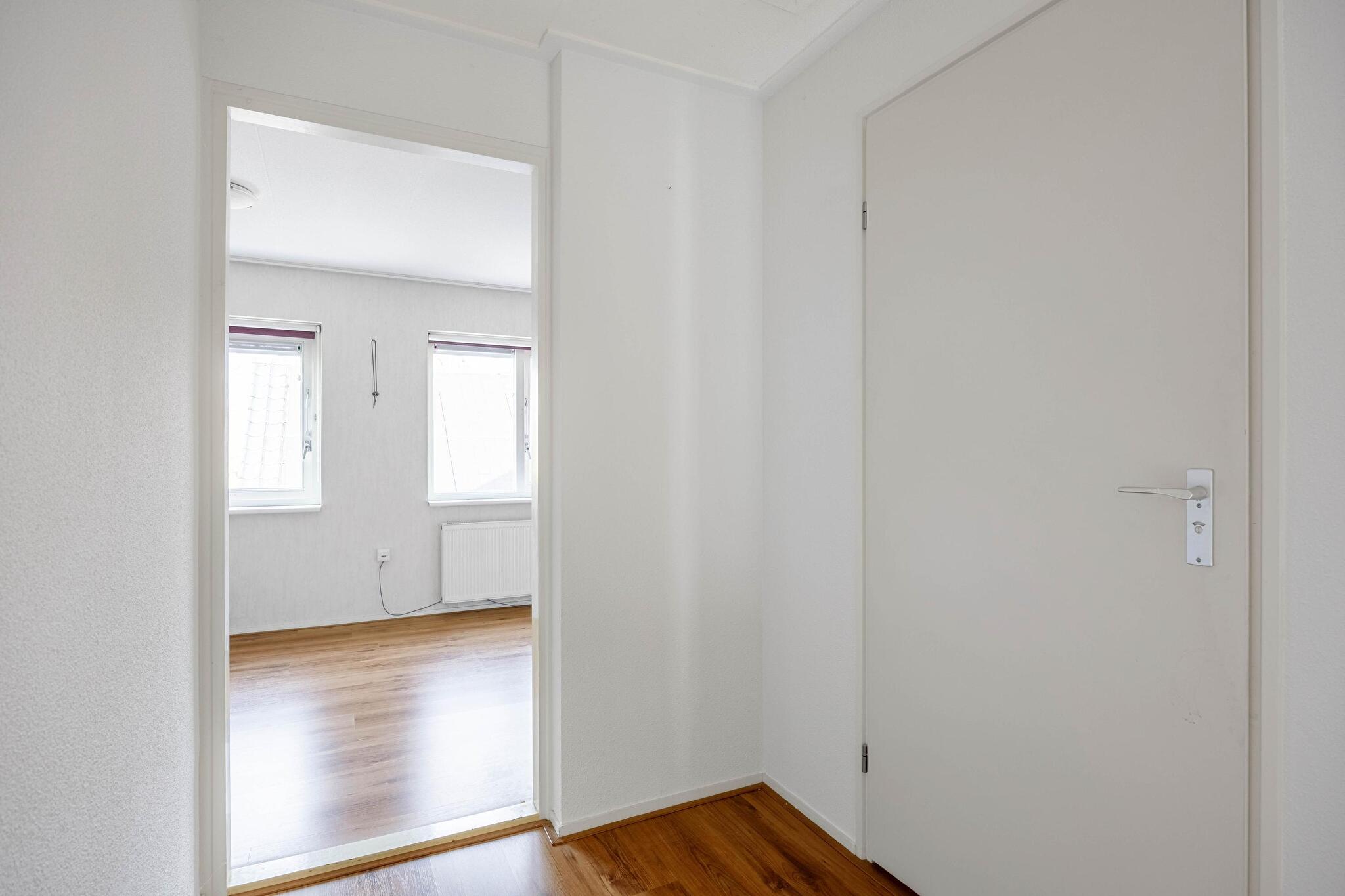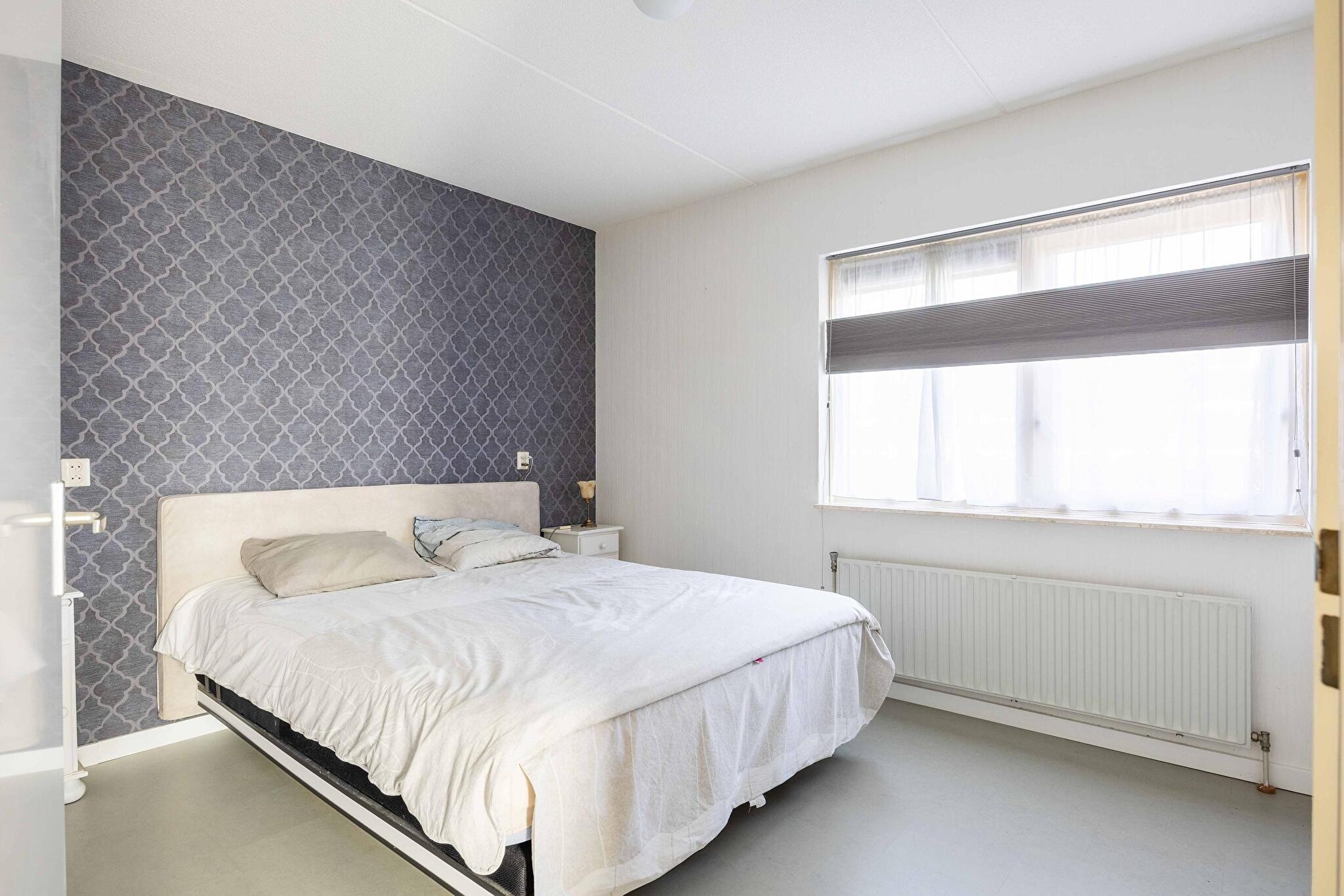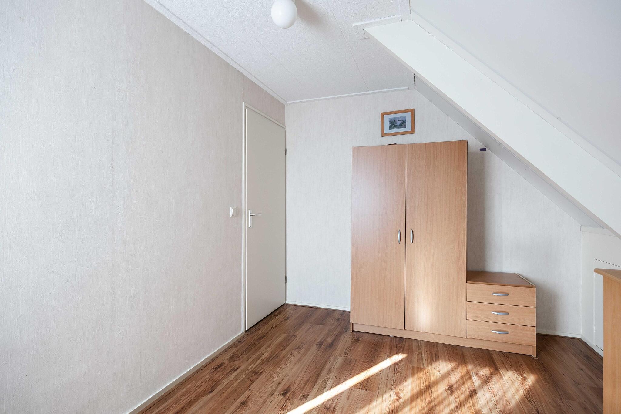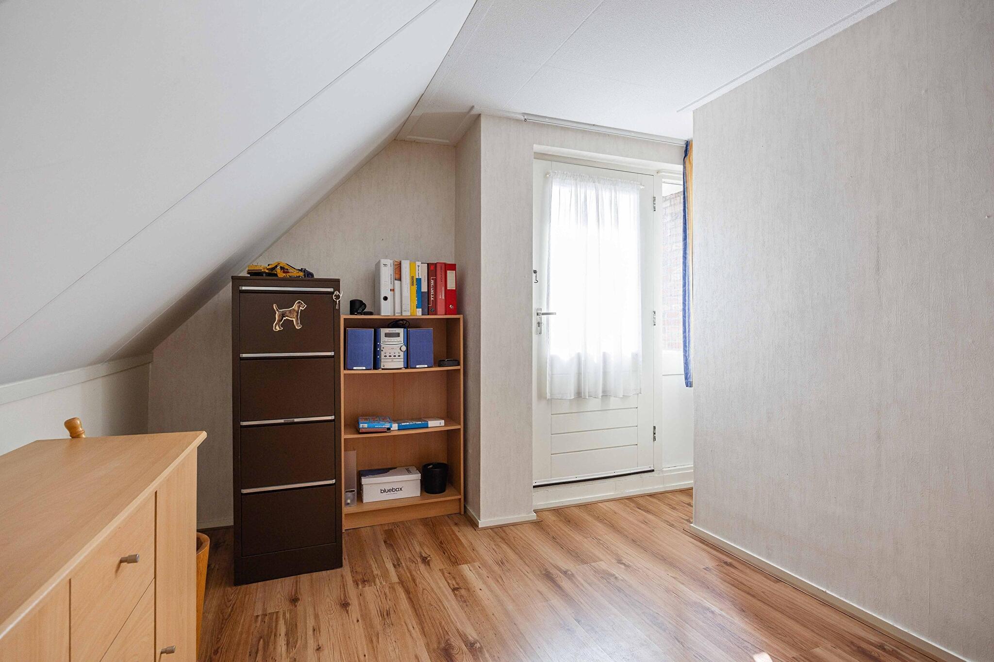Bij binnenkomst valt het meteen op: de hal is uitnodigend en functioneel, compleet met meterkast en een trapopgang. Aan de voorzijde vind je een extra kamer die je helemaal naar wens kunt inrichten: een werkkamer voor thuiswerken, of bijvoorbeeld een slaapkamer voor wie het gemak zoekt van wonen op de begane grond. Ideaal, toch? Je treft hier overigens nóg een ruime slaapkamer, waardoor deze woning uiterst geschikt is voor mensen die liever niet (meer) de trap op en af hoeven. De toiletruimte is netjes en voorzien van een fonteintje – fris en praktisch. De aangrenzende badkamer is uitgerust met een douche en uiteraard een wastafel. Heel plezierig is ook de aanwezigheid van een lichte, comfortabele woonkamer met mooie erker en een schuifpui naar de tuin. Dat is elke dag genieten, met mooie lichtinval en zicht op het groen buiten.