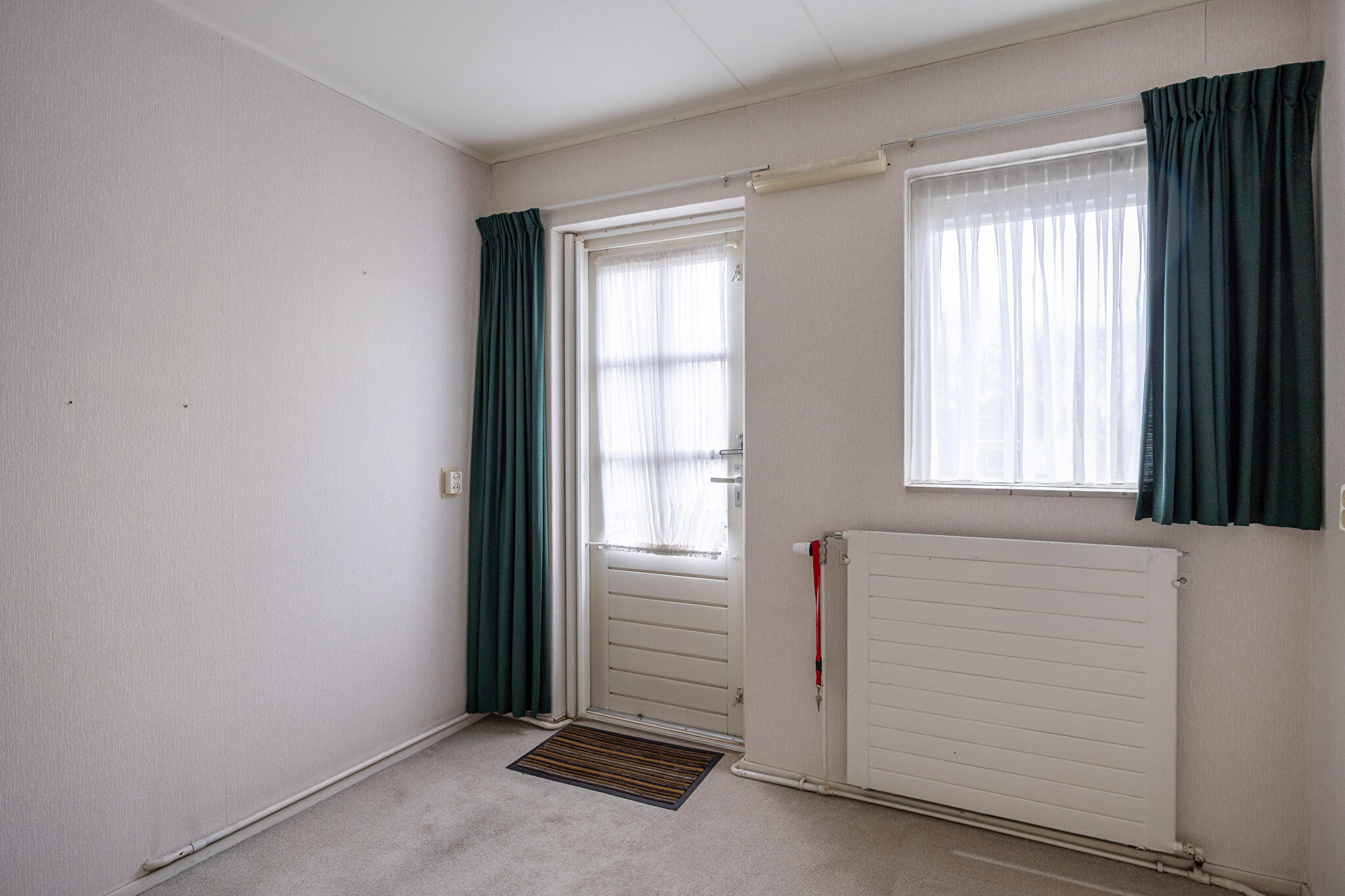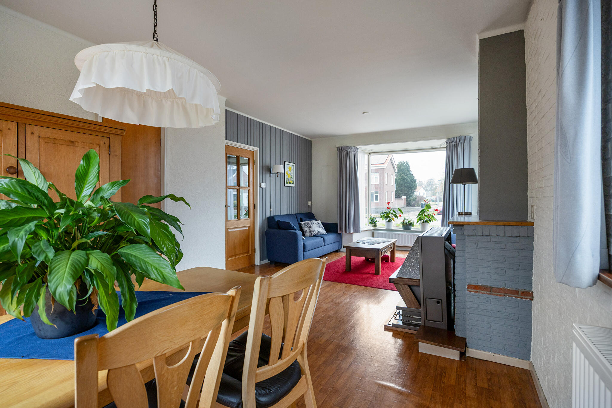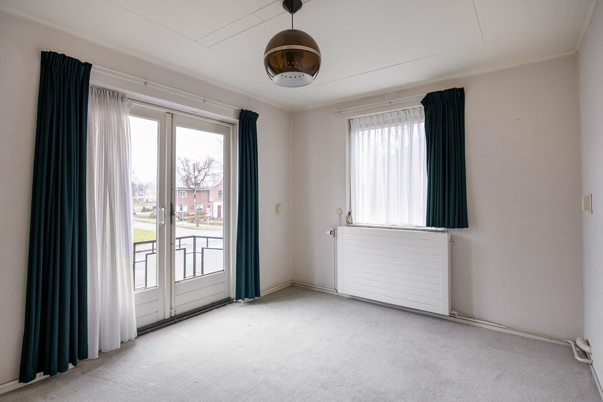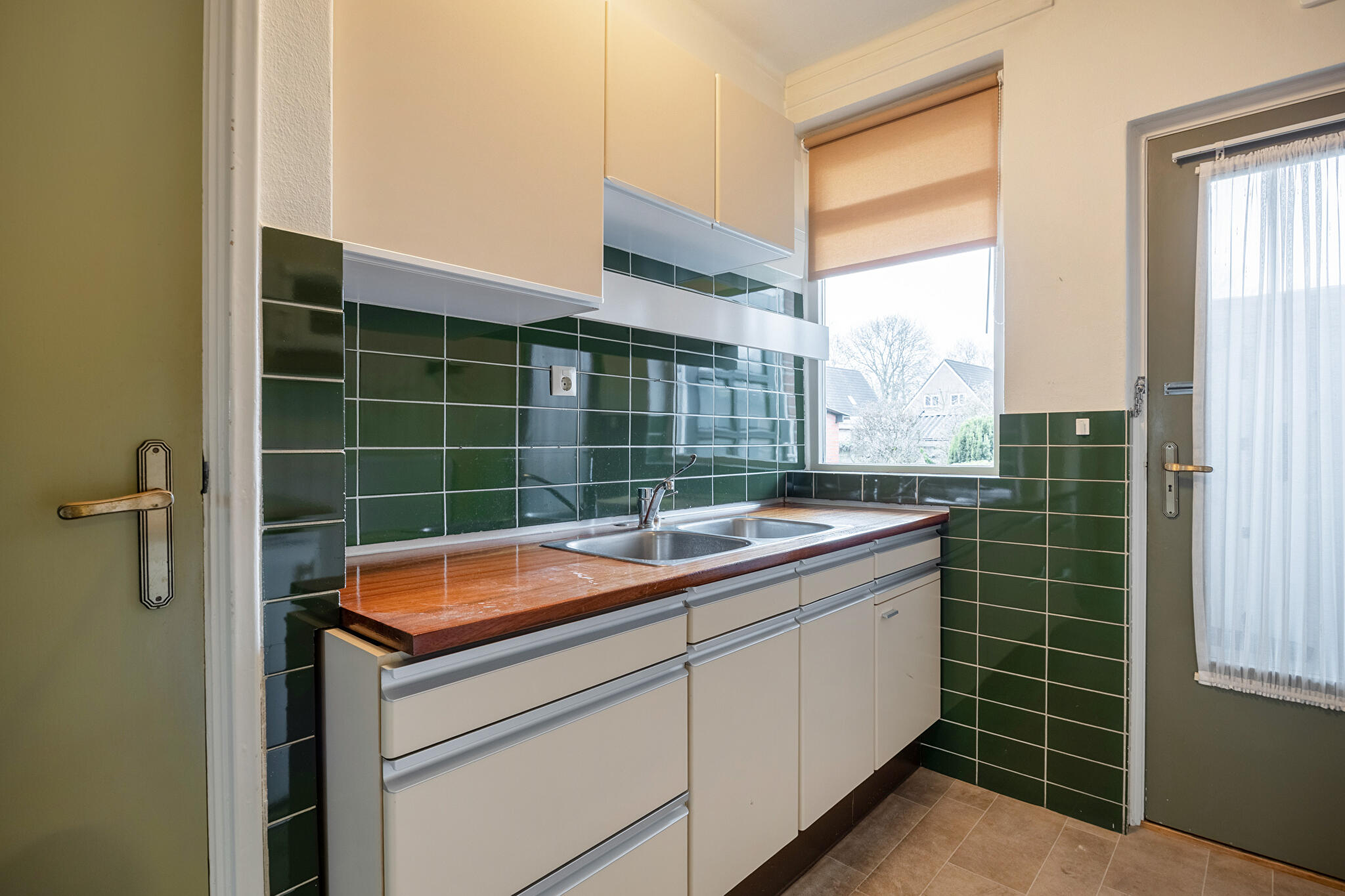 Stap binnen in de ruime hal, waar het direct duidelijk wordt dat dit huis met zorg is bewoond. De hal biedt naast de meterkast ook handige bergruimte in de kelder/trapkast – ideaal voor je voorraad. De toiletruimte biedt een toilet en een fonteintje. Vervolgens kom je in de lichte woonkamer, waar de gezellige gashaard direct voor sfeer zorgt tijdens onweersbuitjes of koude winteravonden. Dankzij de erker geniet je niet alleen van veel daglicht, maar ook van een heerlijk vrij uitzicht op het groen en in de verte een fraaie vijver: een panorama waar je elke ochtend even bij weg kunt dromen.