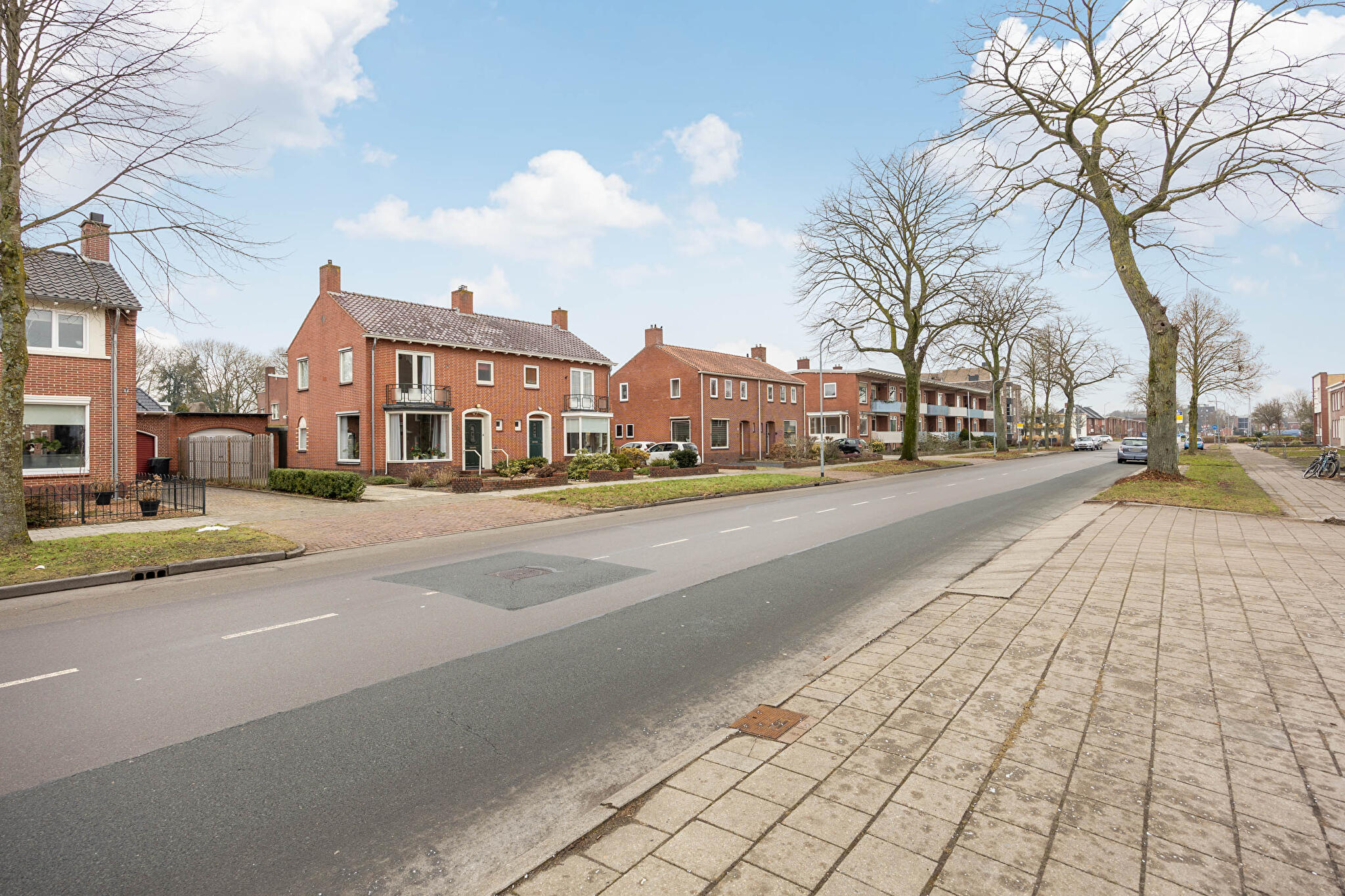 Aan drukke weg, in woonwijk, vrij uitzicht