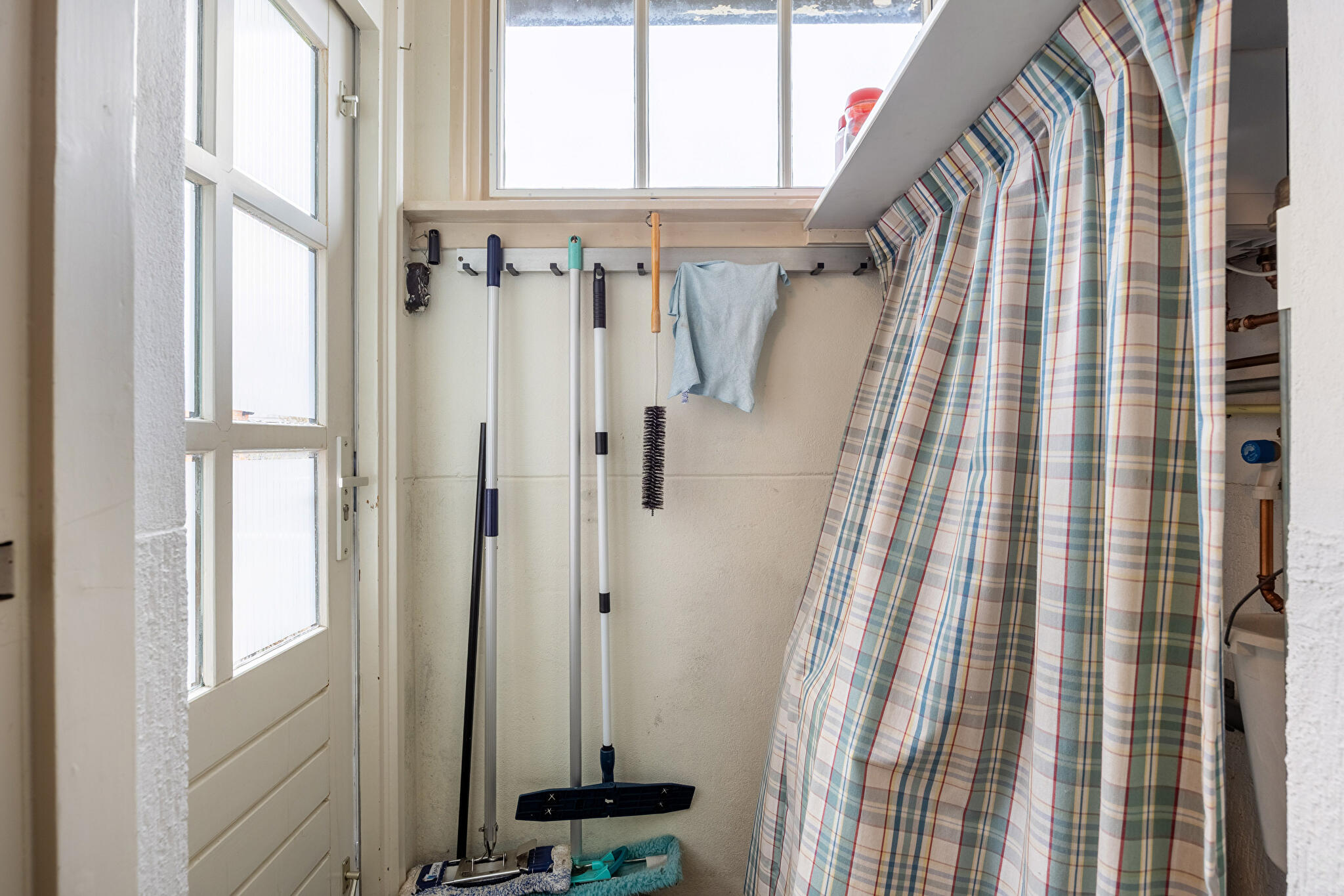 De keuken sluit naadloos aan bij de woonkamer en is voorzien van een praktische, eenvoudige opstelling. Met een 4-pits gasfornuis, een afzuigkap en een oven kan elke hobbykok hier lekker aan de slag. Of je nu snel een pastaatje maakt op maandagavond of juist uitgebreid wilt uitpakken in het weekend, het werkt hier gewoon prettig. Achter de keuken vind je de bijkeuken. Hier is gedacht aan alles: een achterentree voor de vieze laarzen na een wandeling door het park, aansluitingen voor wasmachine en droger, én de spiksplinternieuwe CV-ketel (Intergas, uit 2025) die zorgt voor een behaaglijk binnenklimaat.