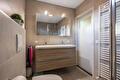 De overloop biedt toegang tot drie slaapkamers, waarvan één is voorzien van een eigen wasbak; de moderne badkamer met regendouche, dubbele wastafel en toilet. En is er middels vaste trap toegang naar de tweede verdieping.