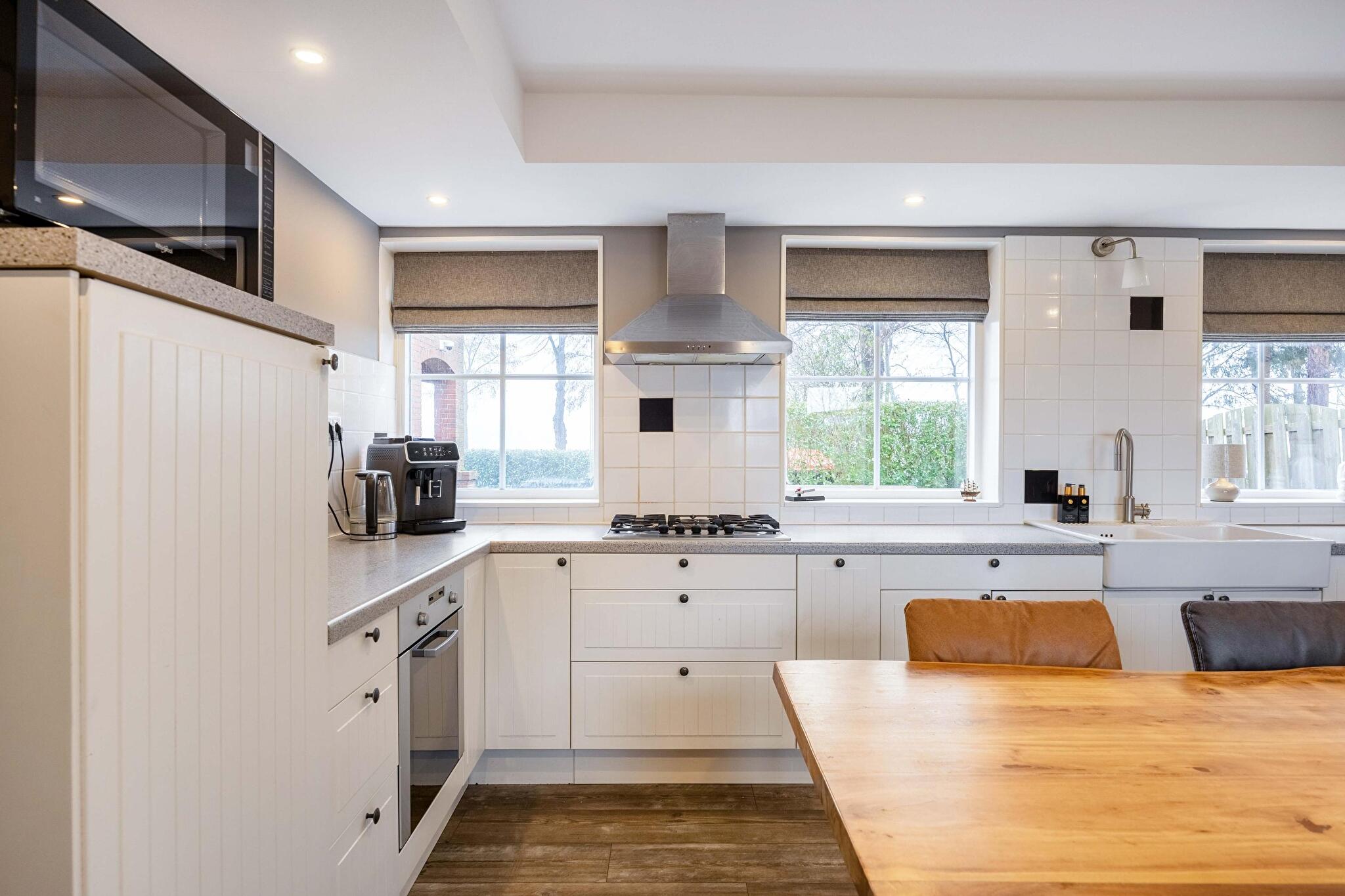 Bij binnenkomst valt direct de prettige indeling op. De ruime woonkeuken vormt het hart van de woning: een fijne plek om samen te koken, te eten en de dag te beginnen of juist af te sluiten. Hier komt bij dat de keuken beschikt over tuindeuren waardoor je zo je terras op loopt om lange avonden buiten te zitten met vrienden en familie met een hapje en een drankje bij de vuurkorf.