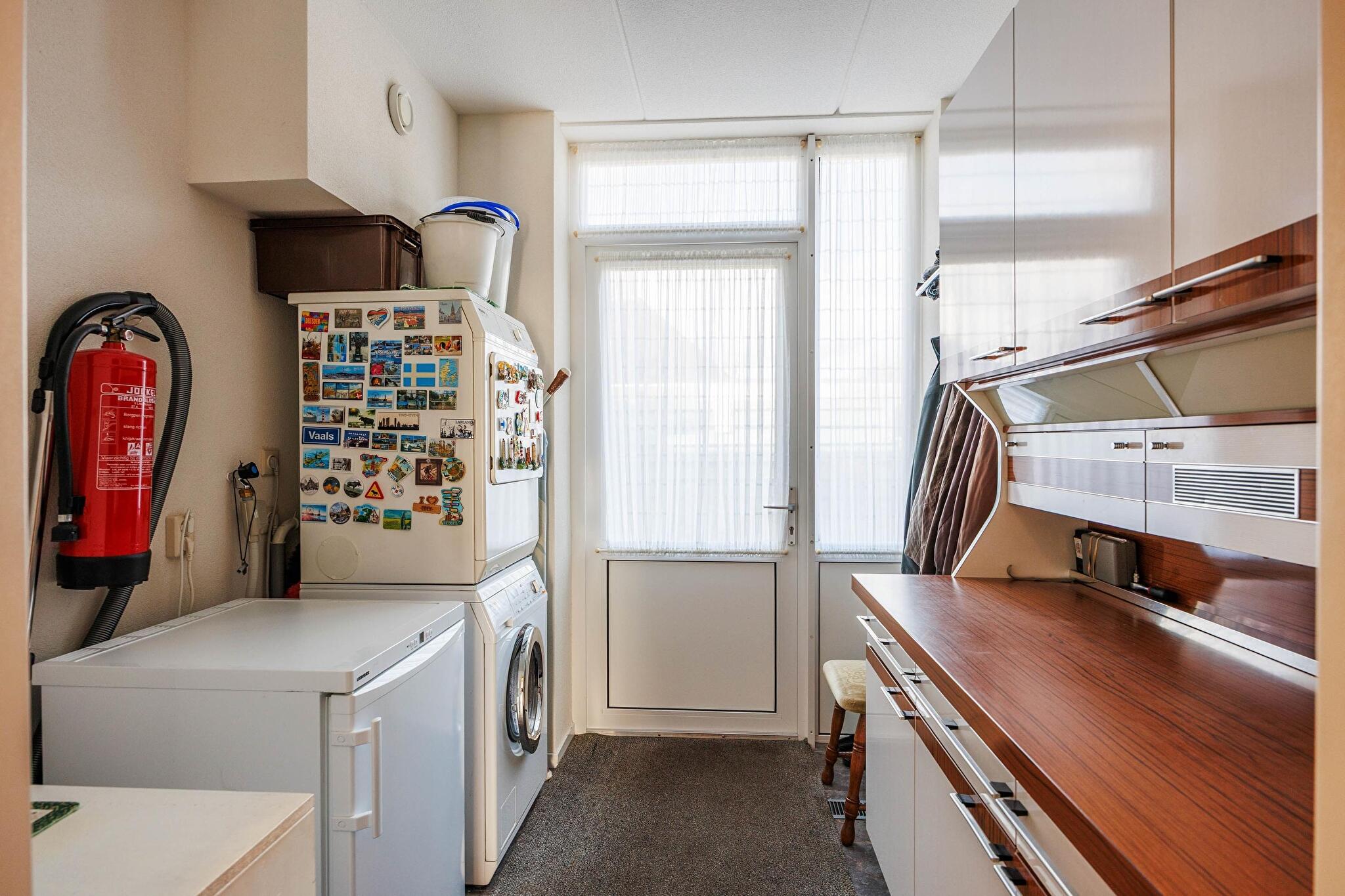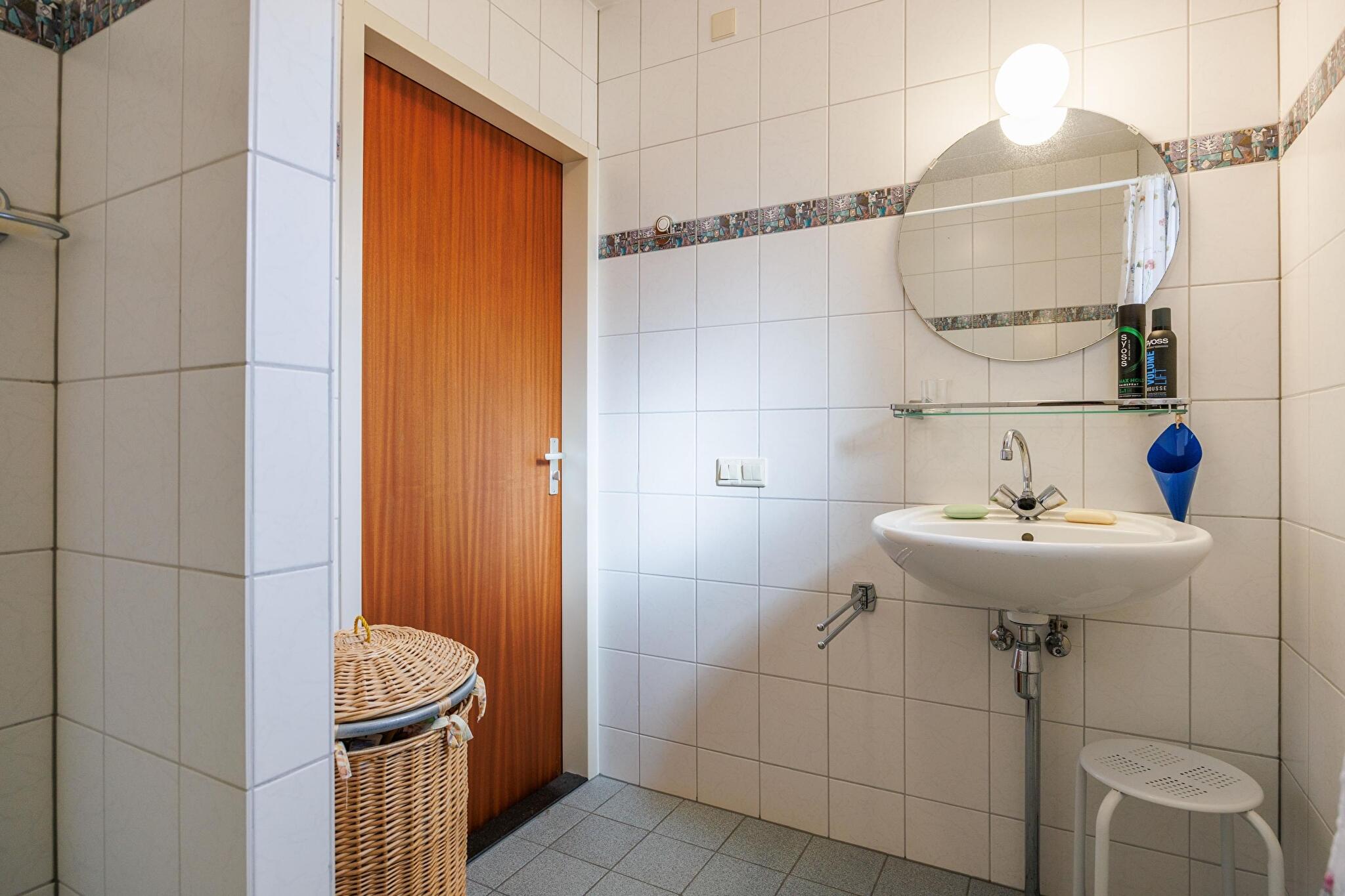 Wat deze woning extra praktisch maakt, is de bijkeuken. Hier vind je de aansluitingen voor je wasmachine en droger – die stapel wasgoed is zo weggewerkt! Maar ook een waterontharder (weg met kalkaanslag!) en de achterentree. Vooral met kinderen of een hond ideaal: vieze schoenen en jassen blijven lekker buiten de woonkamer.
